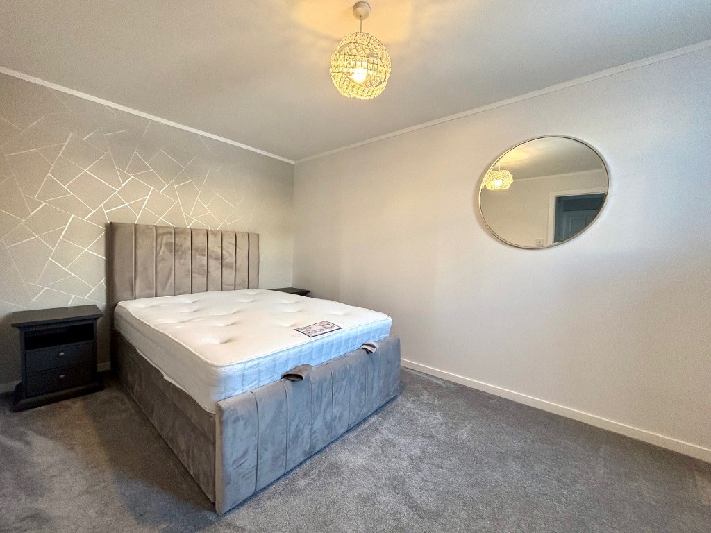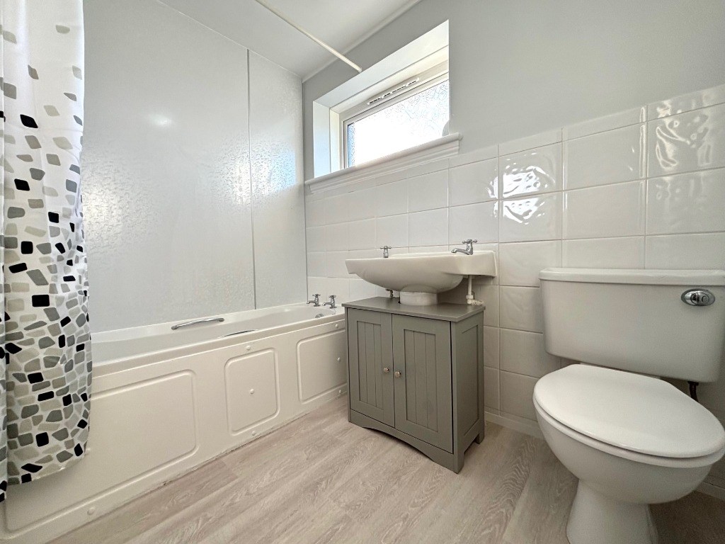 The upper level of the property comprises a tastefully decorated upper hallway with large storage cupboard, two well-proportioned double bedrooms, one of which is fully-furnished with a double bed with large plush headboard, bedside tables, and two chest of drawer units. The second bedroom is part-furnished with a generous integrated wardrobe space and a chest of drawers. This may be suitable as a child's room, spare room or home office. The contemporary bathroom fitted with a shower over the bath completes the accommodation.