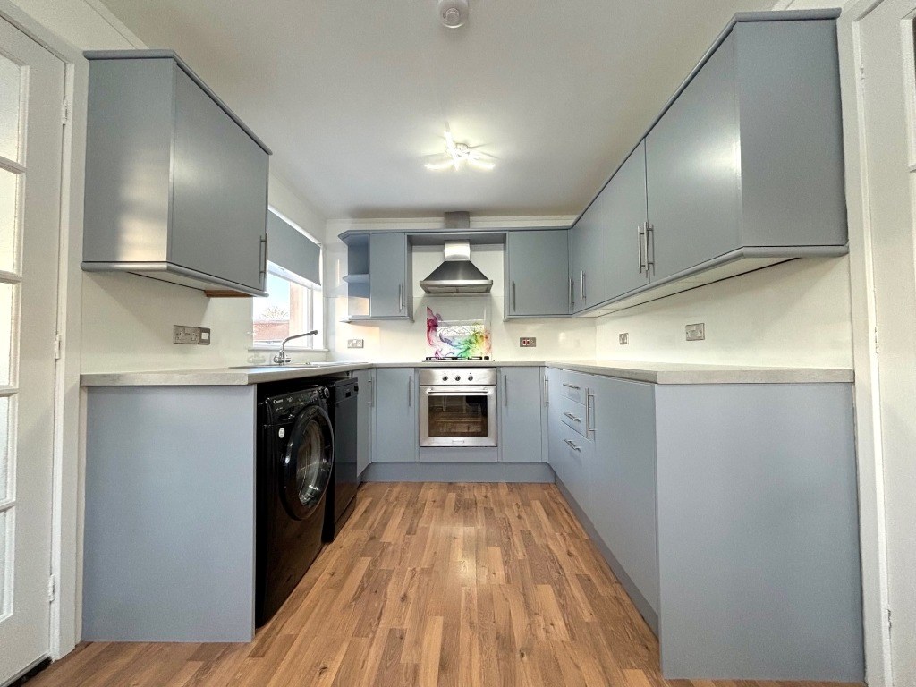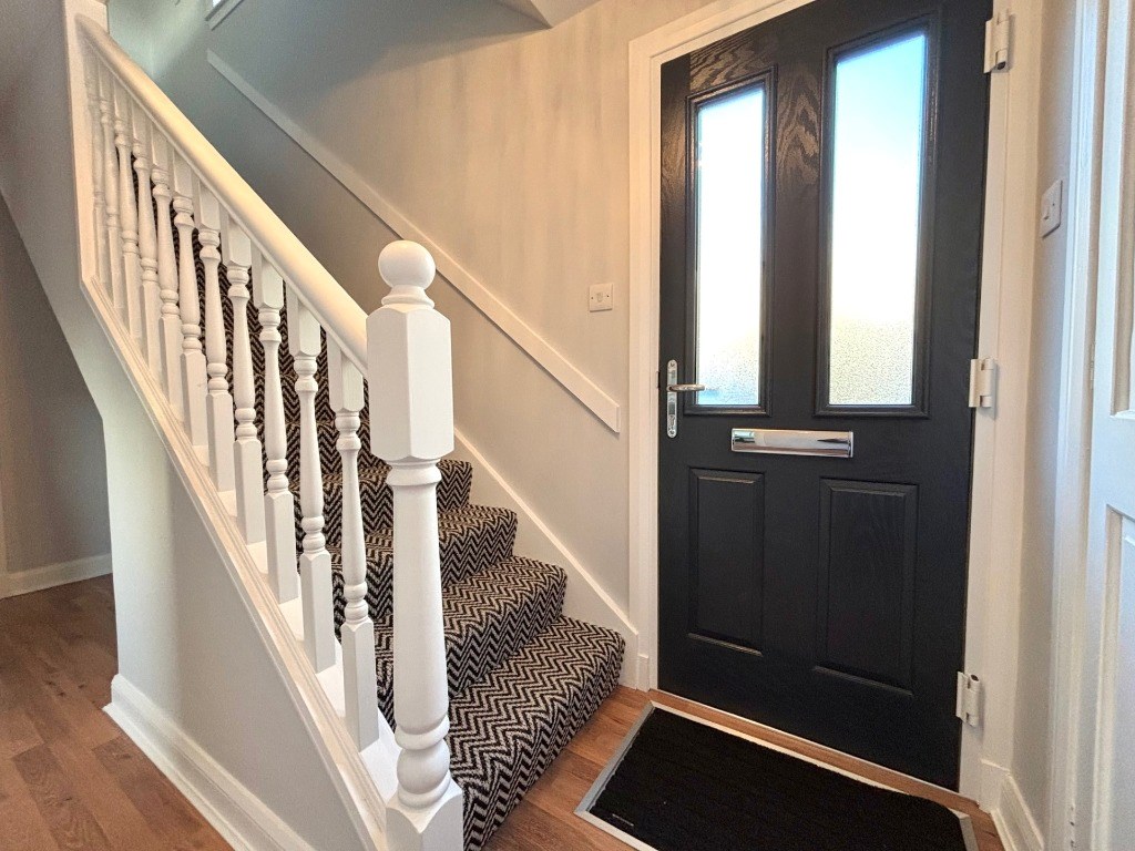 Upon entering through the front door, you are welcomed into the entrance hallway which boasts excellent storage via a large integrated cupboard, and the staircase leading to the upper floor. The hallway leads through to a spacious and bright lounge, tastefully decorated and furnished to create a warm and homely atmosphere. The generously sized kitchen boasts a modern finish and includes a dining table and chairs suitable for relaxing, dining or home working. It is fully equipped with a slimline dishwasher, gas hob, oven, large fridge freezer, and washing machine. A rear hallway provides access to the private garden via the back door.
