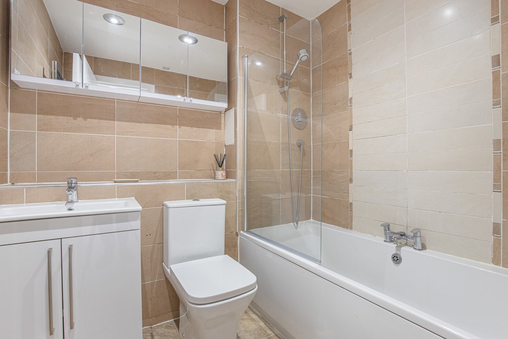 BATHROOM The bathroom for this property is crafted to be compact and sleek to provide any tenant with the aspects everyone needs from a bathroom. Tiled walls provide a homely touch to a bathroom that boasts a large sink area and two double panel cupboards with mirrors to provide storage space for all of a tenants' bathroom items. A modern style shower doubles up as a bathtub, thus providing the user with necessary tools to either quickly nip in and out of the shower or sit and soak in a hot bath after a long day. Complete with large towel rail for quick drying of all items, and under sink storage cupboards, culminating in a bathroom that brings modern styles in combination with impressive features to complete the essentials of this property.