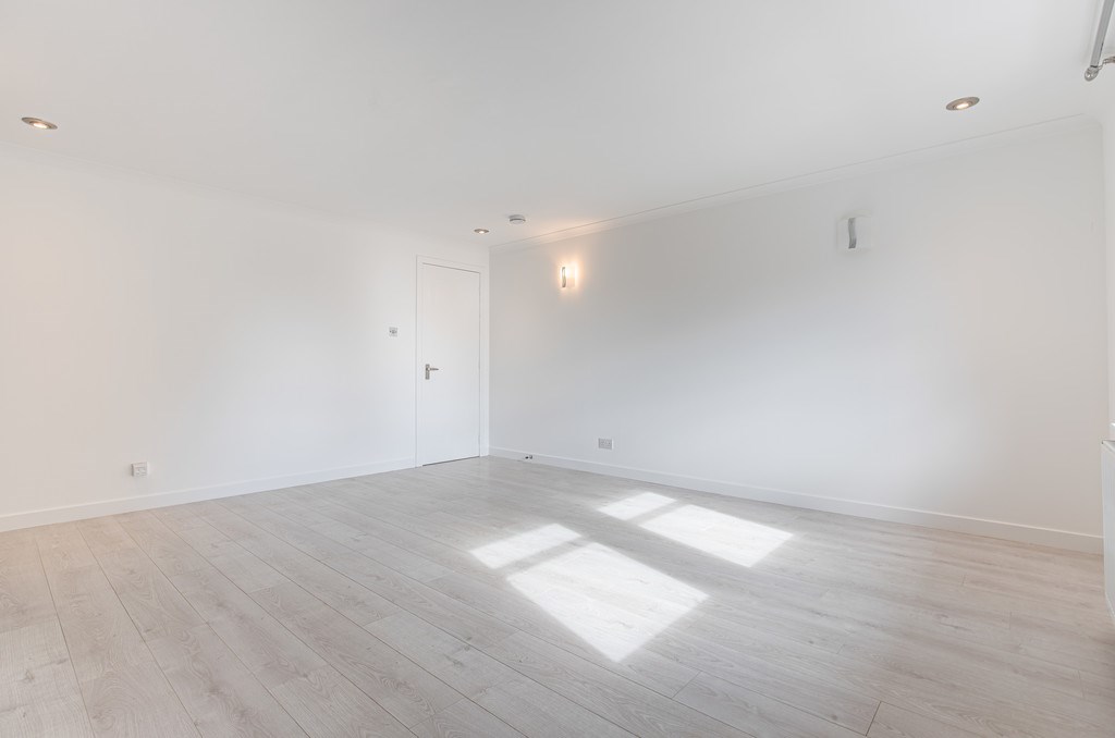LIVING ROOM While being unfurnished, this living space offers a huge amount of potential for any interior plans that a tenant may have. Modern wooden panel flooring provides a sturdy foundation on which to build your perfect living space. Two large widows shed light into this space and highlight the vast area it provides for future projects. Four wall mounted lights provide ideal lighting when the sun goes down, with a long radiator and an electric fireplace located on the two far corner walls possessing the ability to make the room so much cosier in those winter months.