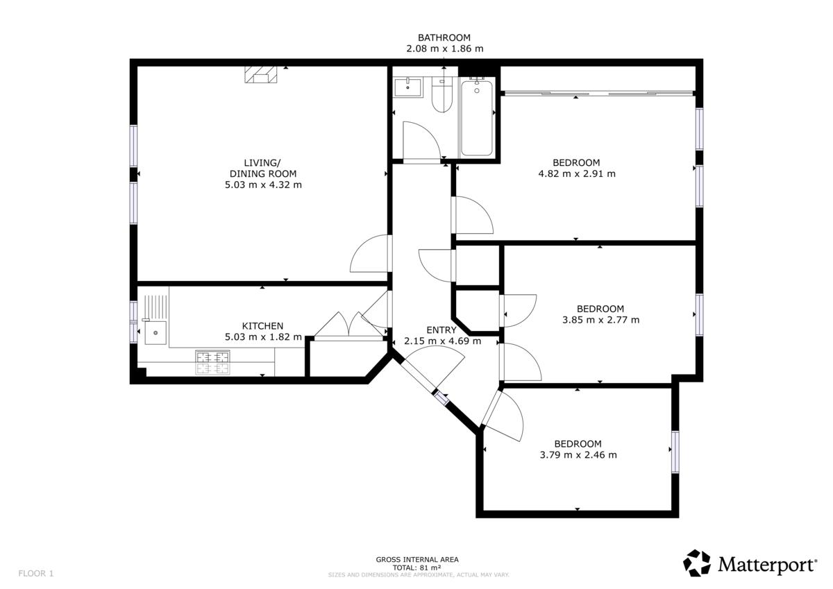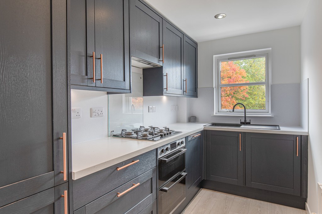 KITCHEN The kitchen is illuminated by a large window opposite the door to shed great lighting on what is a very stylish and modern kitchen unit. A gas hob as well as a two-tier oven allow you to cook to your hearts content, with a large sink giving you the space wash any of your kitchen contents without issue. Fridge and fridge freezer are provided with an excess of sharply designed cupboards and drawers for of your kitchen crockery and essentials, multiple plug sockets additionally add the option to power your favourite kitchen electricals. A walk-in large storage cupboard provides storage for all kitchen or general flat necessities.