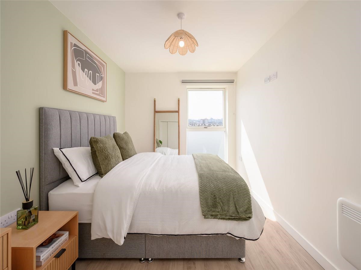 The apartments are tastefully decorated and comprise of open plan fitted kitchens with integrated appliances, fully tiled bathrooms and spacious bed-rooms with fitted wardrobes offering ample storage space. The design for the living spaces offers an inviting, contemporary feel, anchored by boucle sofas featuring forest green & grey tones with coordinated armchairs. The space is enhanced with oak and glass occasional furniture perfectly complementing the overall design and creating a truly desirable living space.