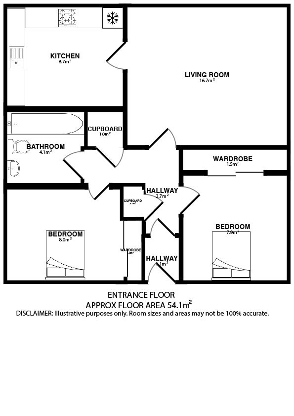 ~2x Double bedrooms of equal proportion; both with built-in storage space