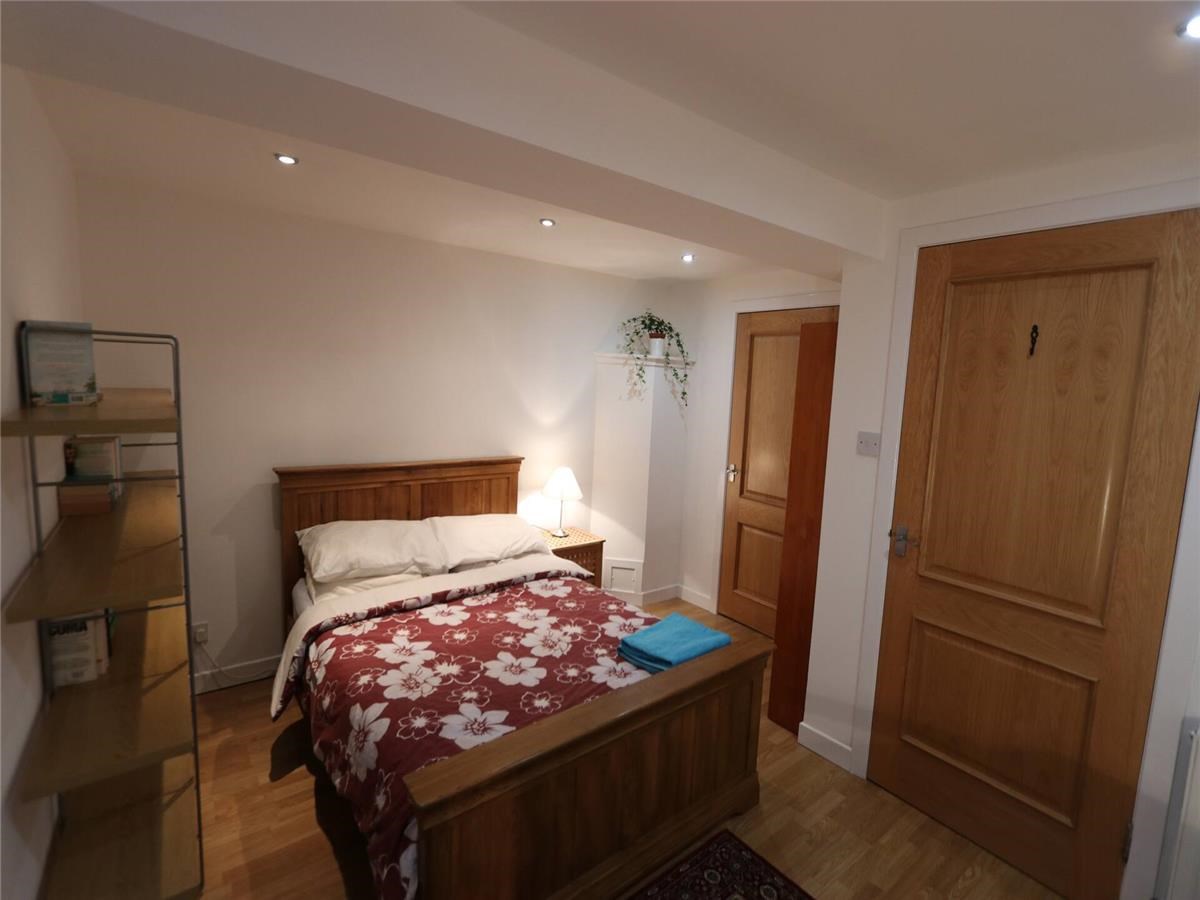~Master bedroom on basement level, with laminate flooring and large store cupboard