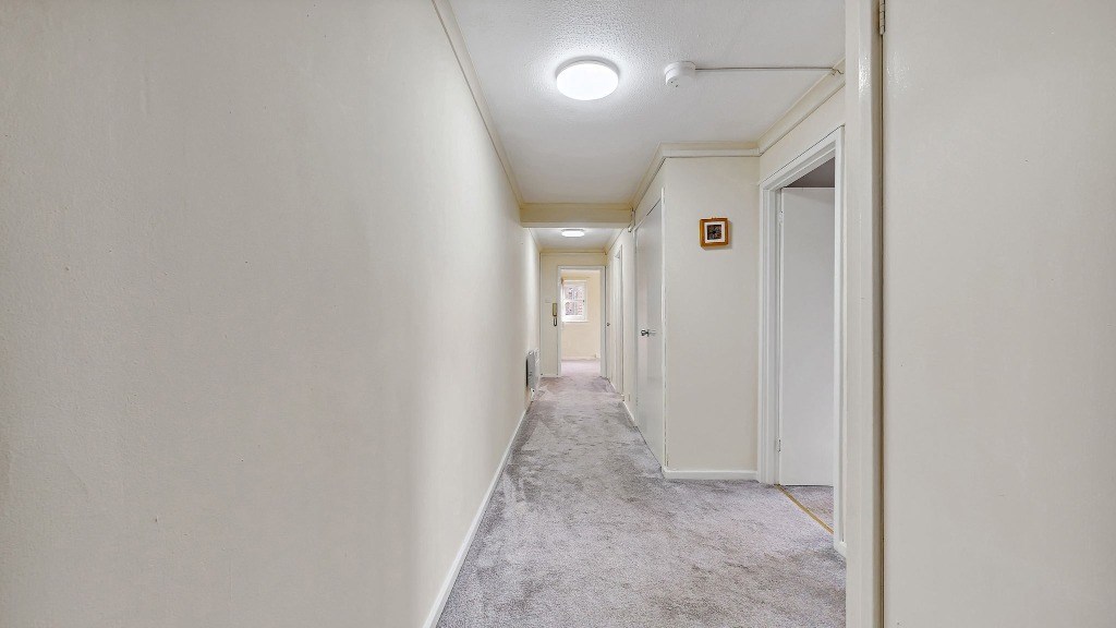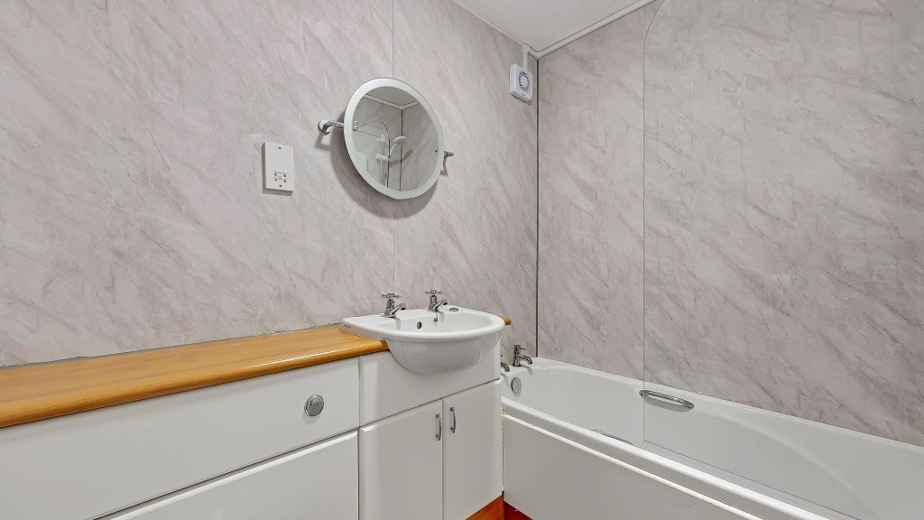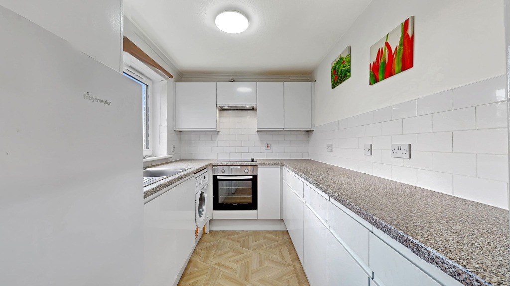 This spacious apartment is located within a well kept building and is accessed only via stairs. Internally the accommodation comprises of reception hallway with three storage cupboards, two double bedrooms both with built-in wardrobes, internal modern bathroom with three piece white bathroom suite and electric shower over the bath, large living room which gives access to the fully fitted kitchen which comes complete with appliances including fridge freezer, washing machine, dishwasher, ceramic hob and electric oven.