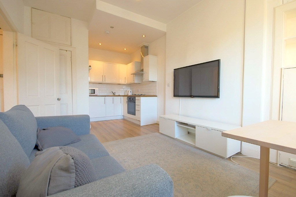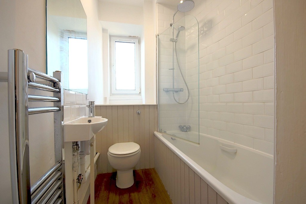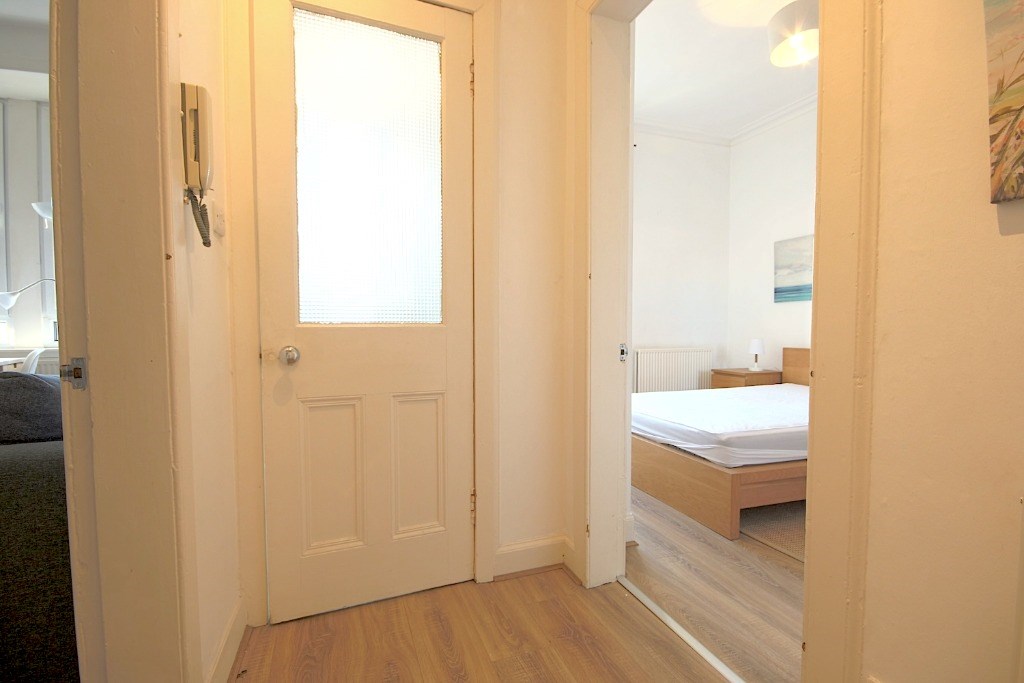 The property forms part of a traditional stone-built tenement with a secure entry door. A welcoming hallway opens to an open-plan living room and kitchen space. The kitchen includes all modern fittings and a gas hob. A modern bathroom features shower-over-bath and heated towel rail, and double bedroom includes plenty of storage space and light. The property is furnished, and has double-glazing throughout.