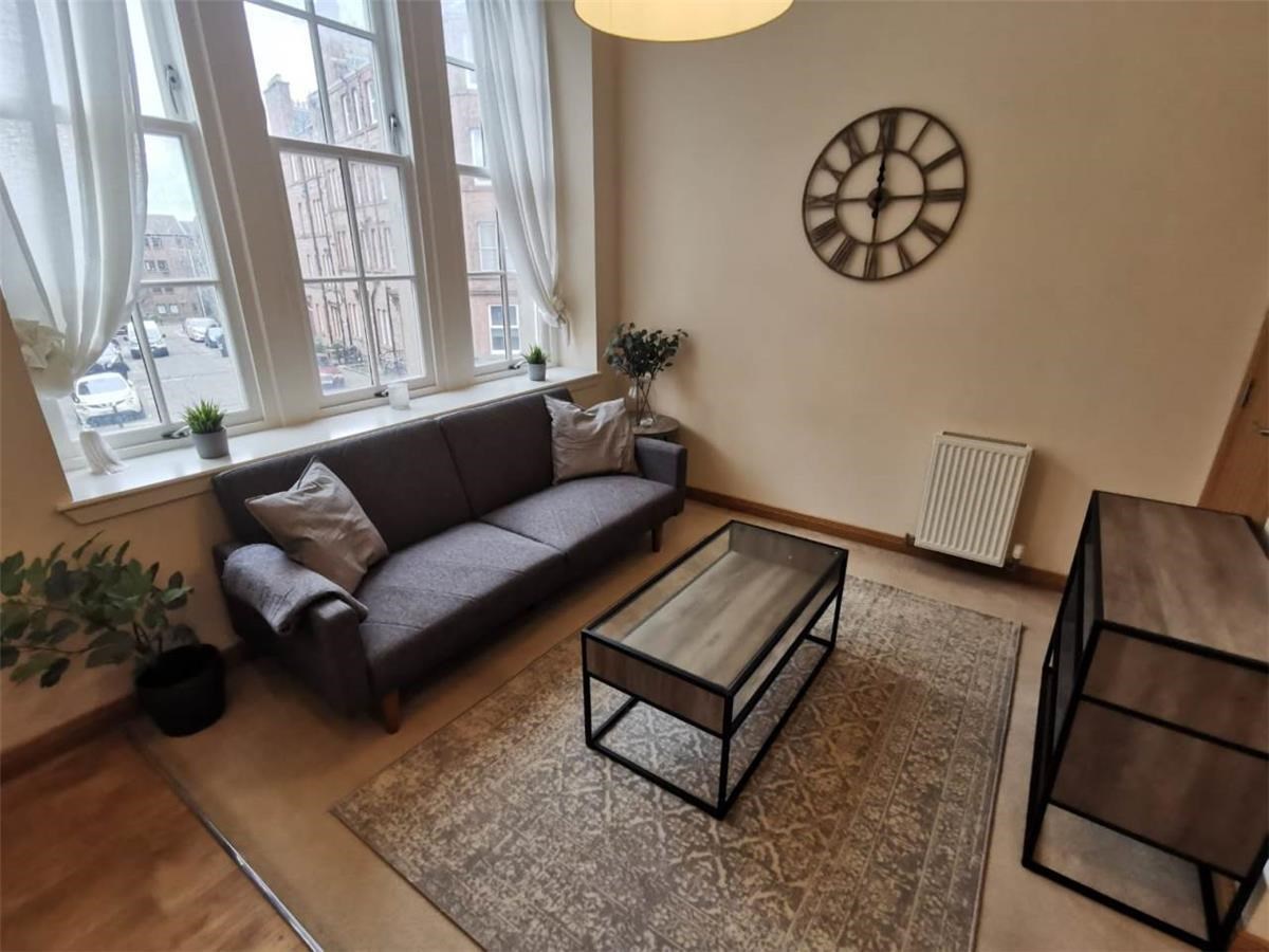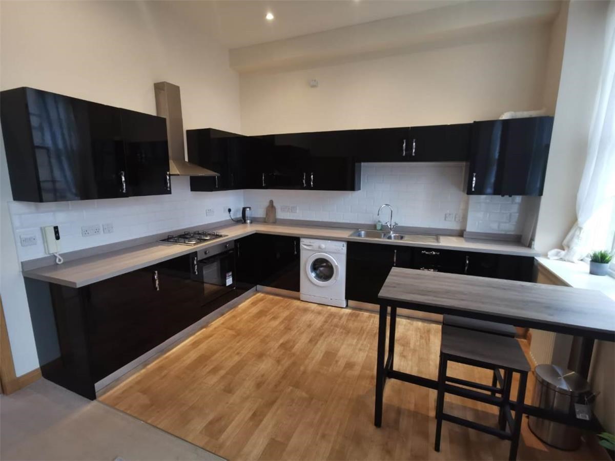 Stylish two bed first floor apartment in well maintained building and with private parking. Accommodation comprises: entrance vestibule, storage cupboard, open plan kitchen/living room with further storage, two double bedrooms; and family shower room. Gas central heating, double glazing. Stair cleaning and building insurance included in rent.