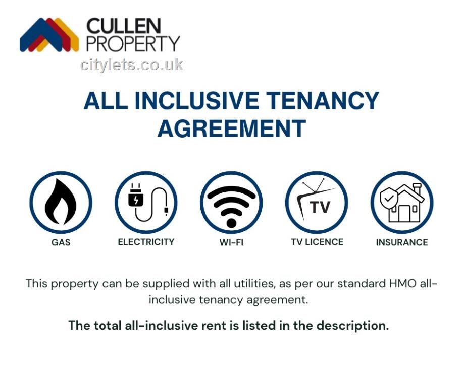 Utilities - The property can be supplied with all utilities included, as per our standard HMO all-inclusive tenancy agreement.