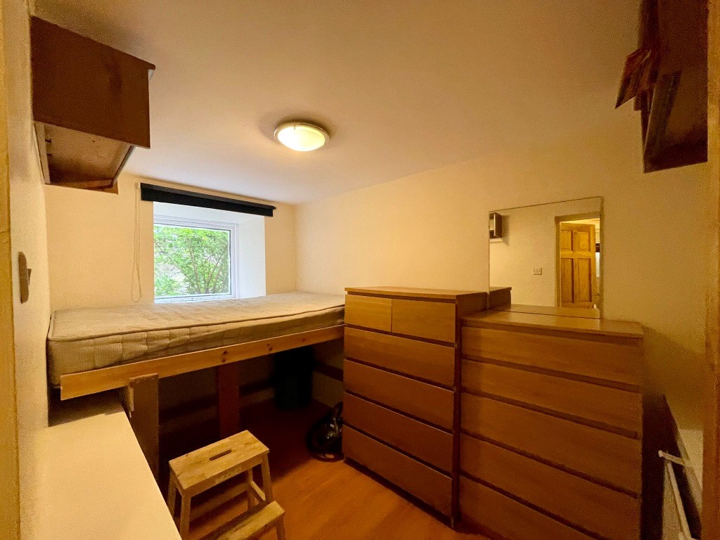 One bed basement flat, backing onto the canal with a large communal garden outside. The kitchen/living area takes up much of the property, with the kitchen providing lots of prep and storage space. The small double bedroom has a platform bed with storage underneath and there are separate toilet and shower rooms. Although it is a basement flat, the stairwell is very open and light, and it is surprisingly bright. Really, it just needs someone to come in and put their personality into it! EPC rating: E. Landlord Registration Number: 891877/230/09071. Letting Agent Registration Number: LAR1811037.