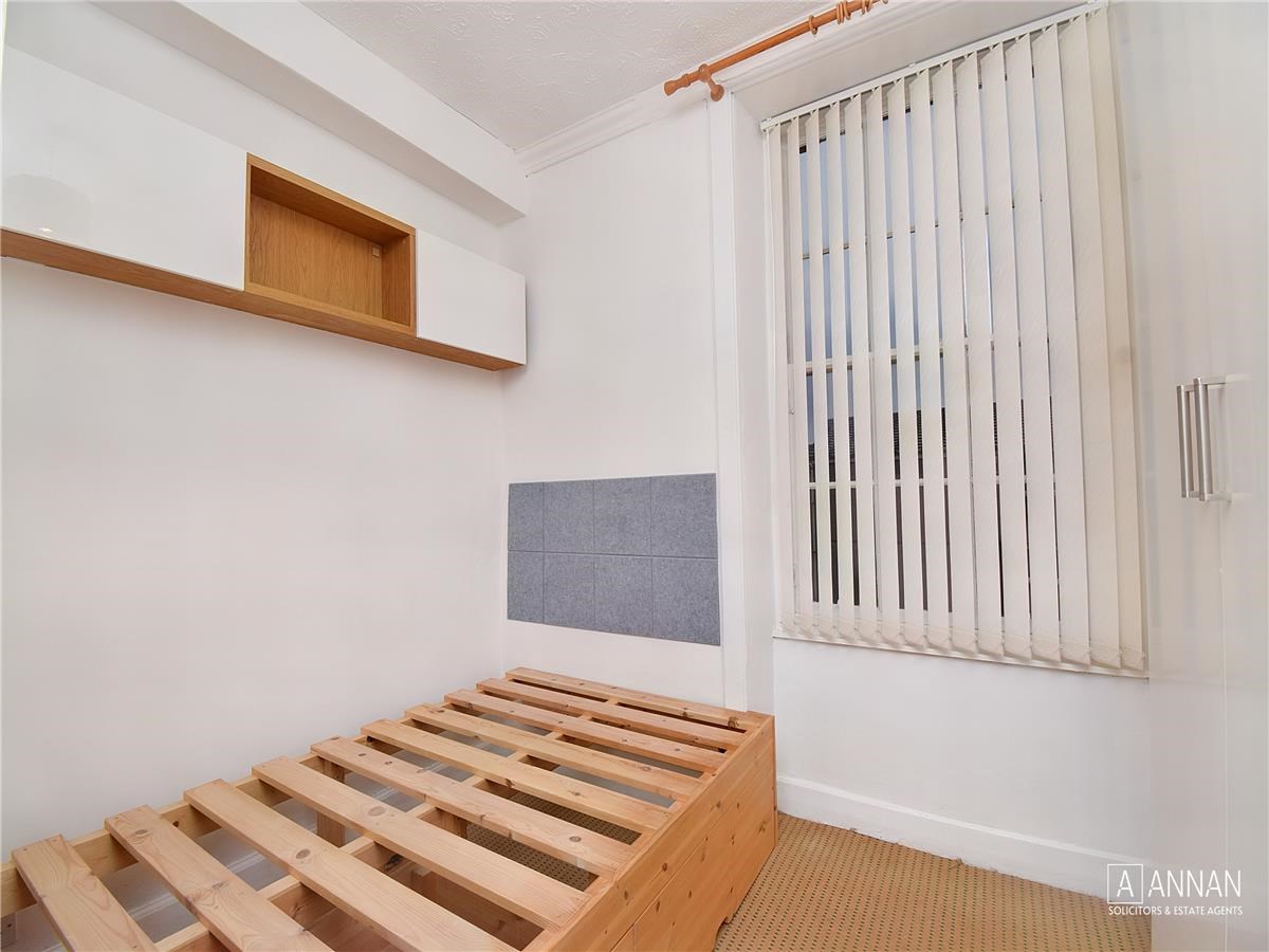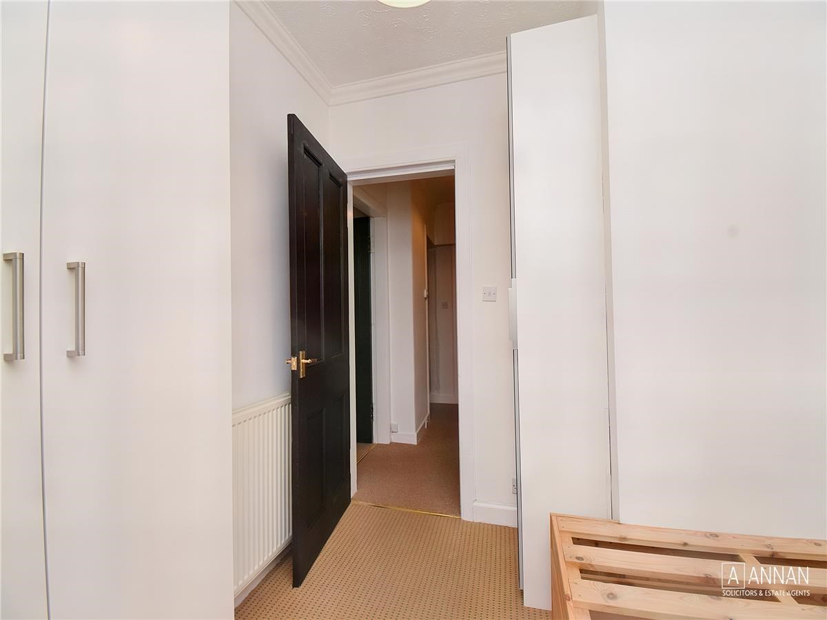 Entered through a well-maintained stairwell, the accommodation comprises: welcoming entrance hallway; bright and spacious living / dining room with feature fireplace and shelved recess; well-equipped kitchen with integrated electric oven and gas hob; generously sized double bedroom 1 with shelved recess; double bedroom 2 and internal shower room with mains operated shower.