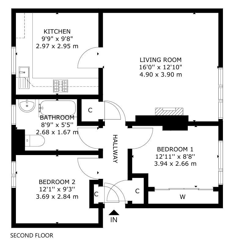 Bright and sunny, warm and dry, freshly repainted, very clean and attractive two-bedroom second-floor flat in Christians.
