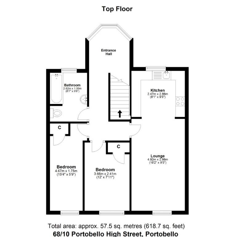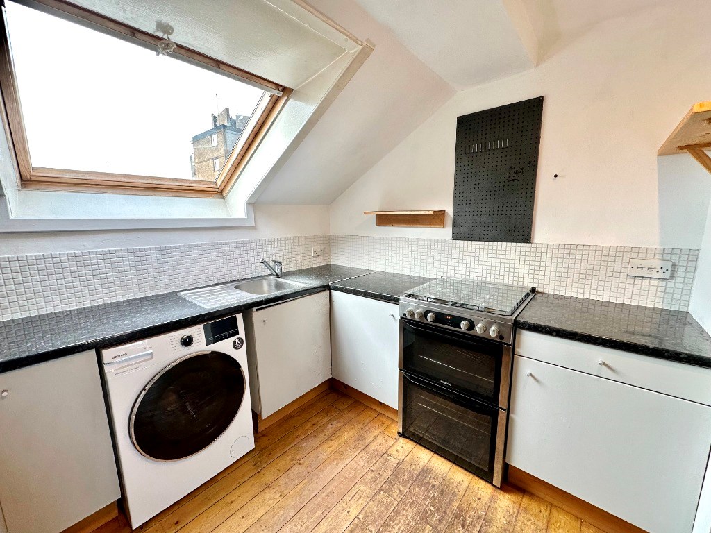 A two bedroom attic conversion part furnished flat set on the second/top floor of a traditional tenement building on Portobello High Street boasting beautiful sea views.