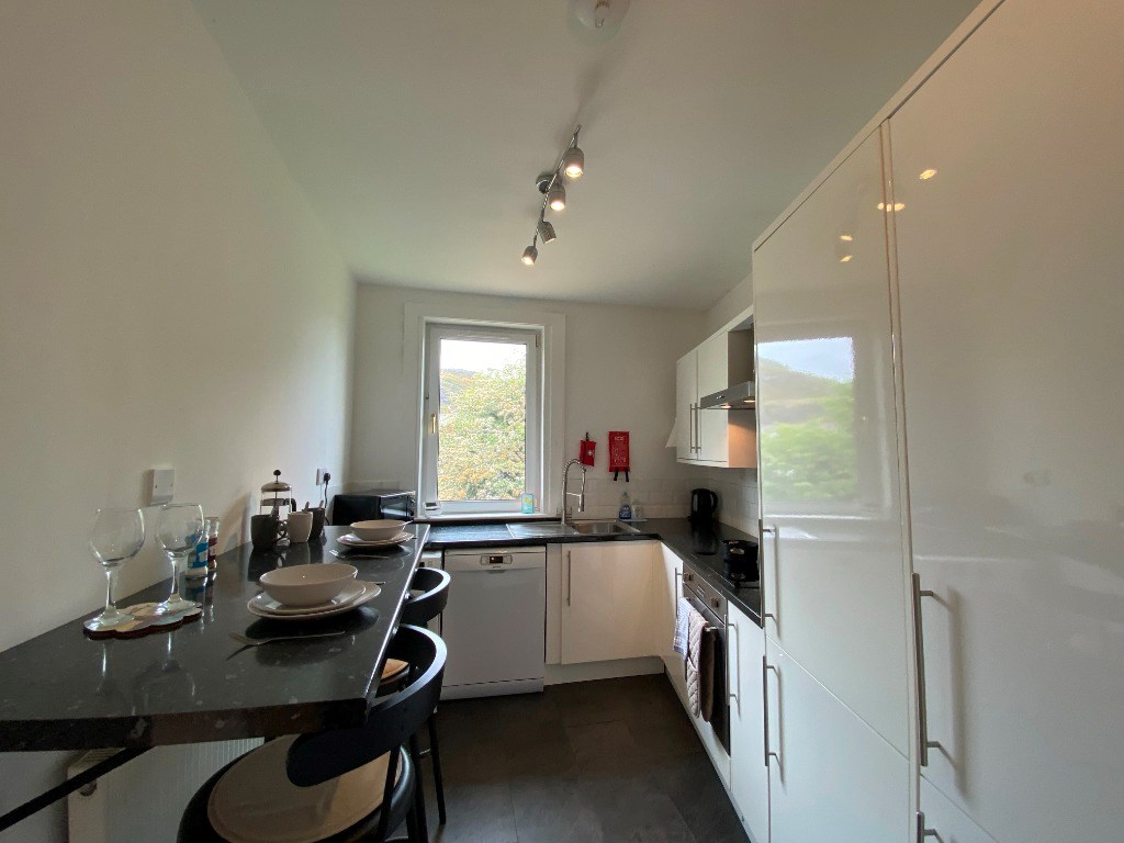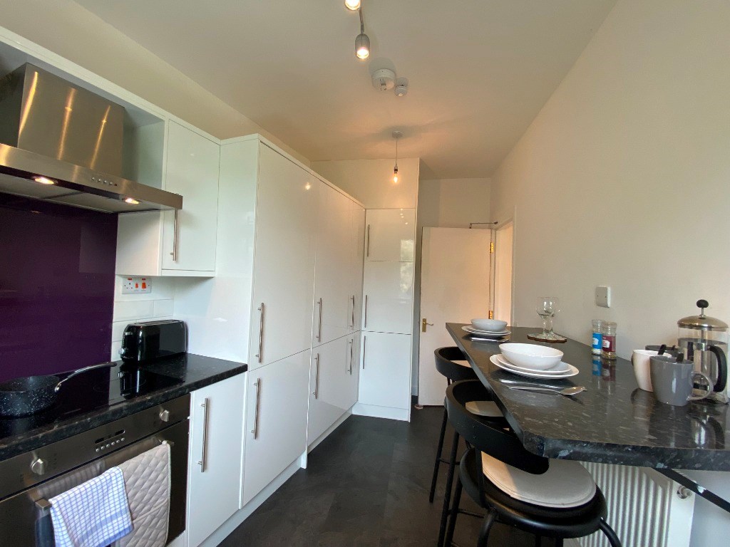 The property comprises a bright and spacious lounge, good sized fitted kitchen with a fitted breakfast bar and white goods provided, two spacious double bedrooms and a bathroom with waterfall shower over the bath.