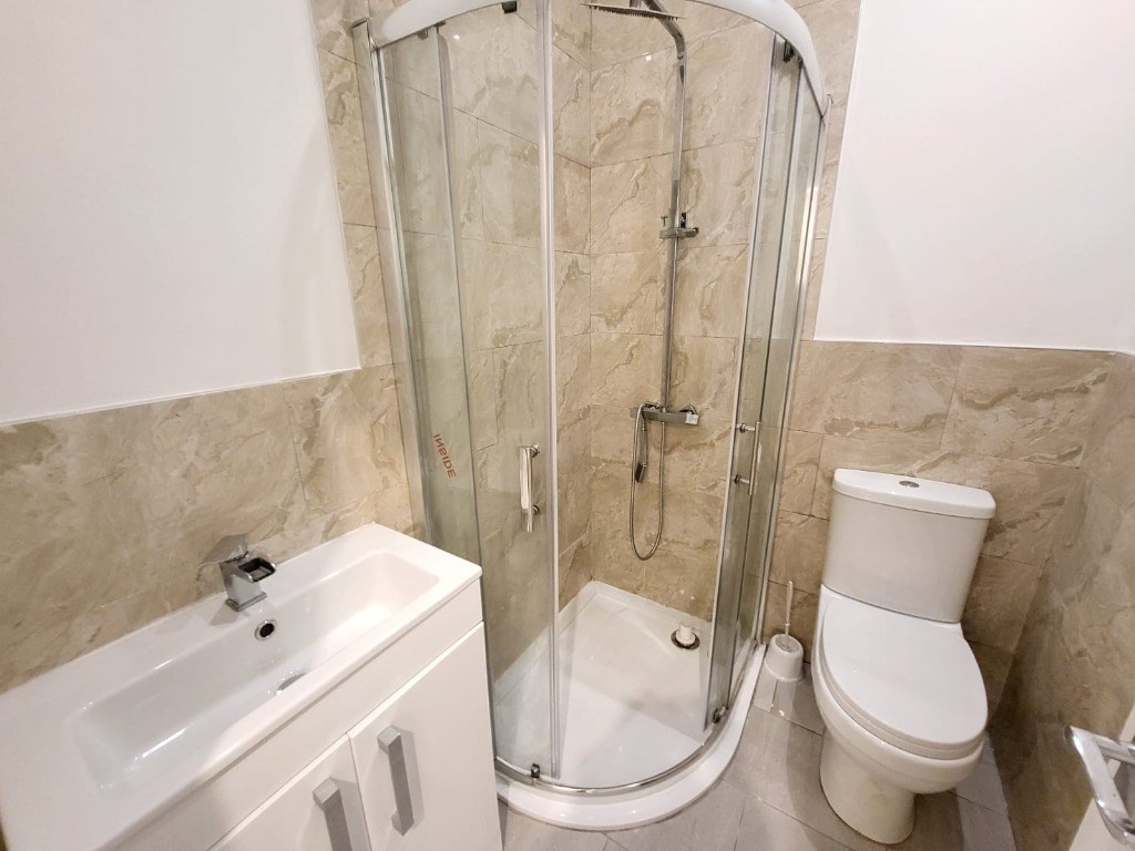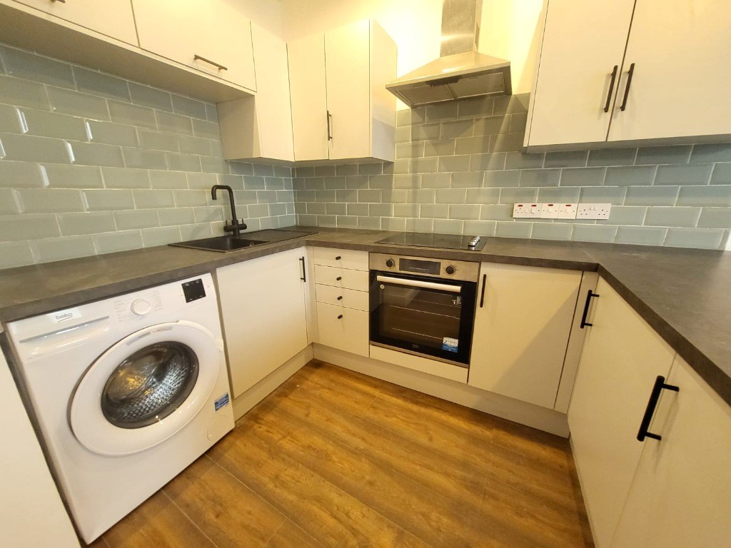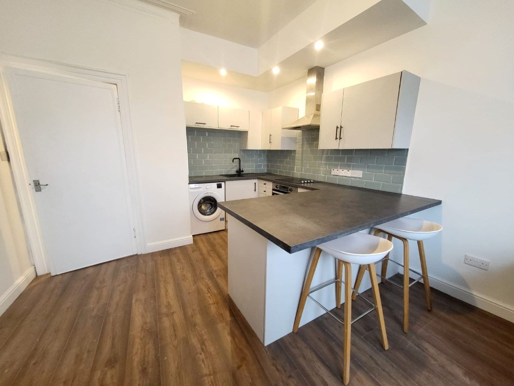 The property comprises an open-plan kitchen and living room, a well-proportioned double bedroom, and a modern shower room.