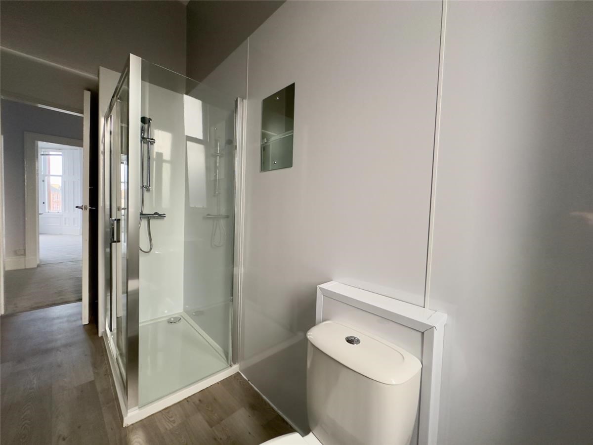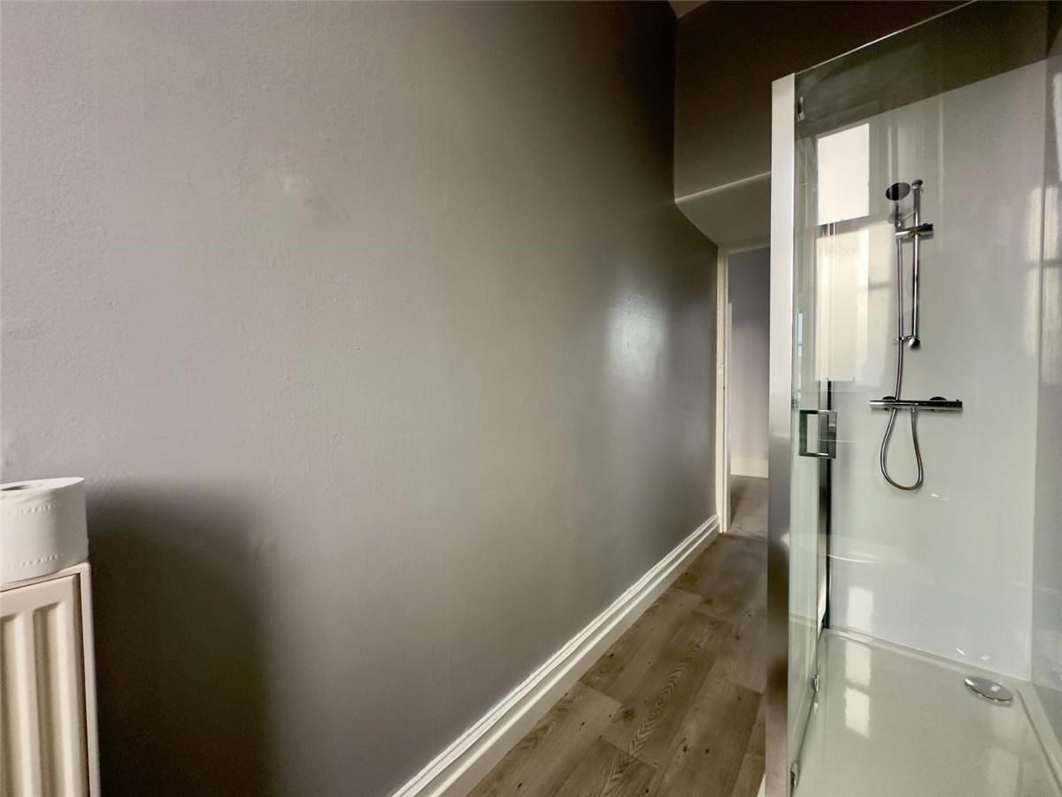 The accommodation comprises of, bright entrance hallway with two storage cupboards, bright and spacious lounge with bay window and walk in cloakroom, large front facing double bedroom with walk in wardrobe and smaller double bedroom to the rear. The newly installed fitted kitchen is modern and spacious with white gloss units housing integrated appliances including washing machine, dishwasher, fridge freezer, oven, hob and cooker hood to one end and space for a dining area at the other end. The shower room comprises of double walk in shower, sink & wc.