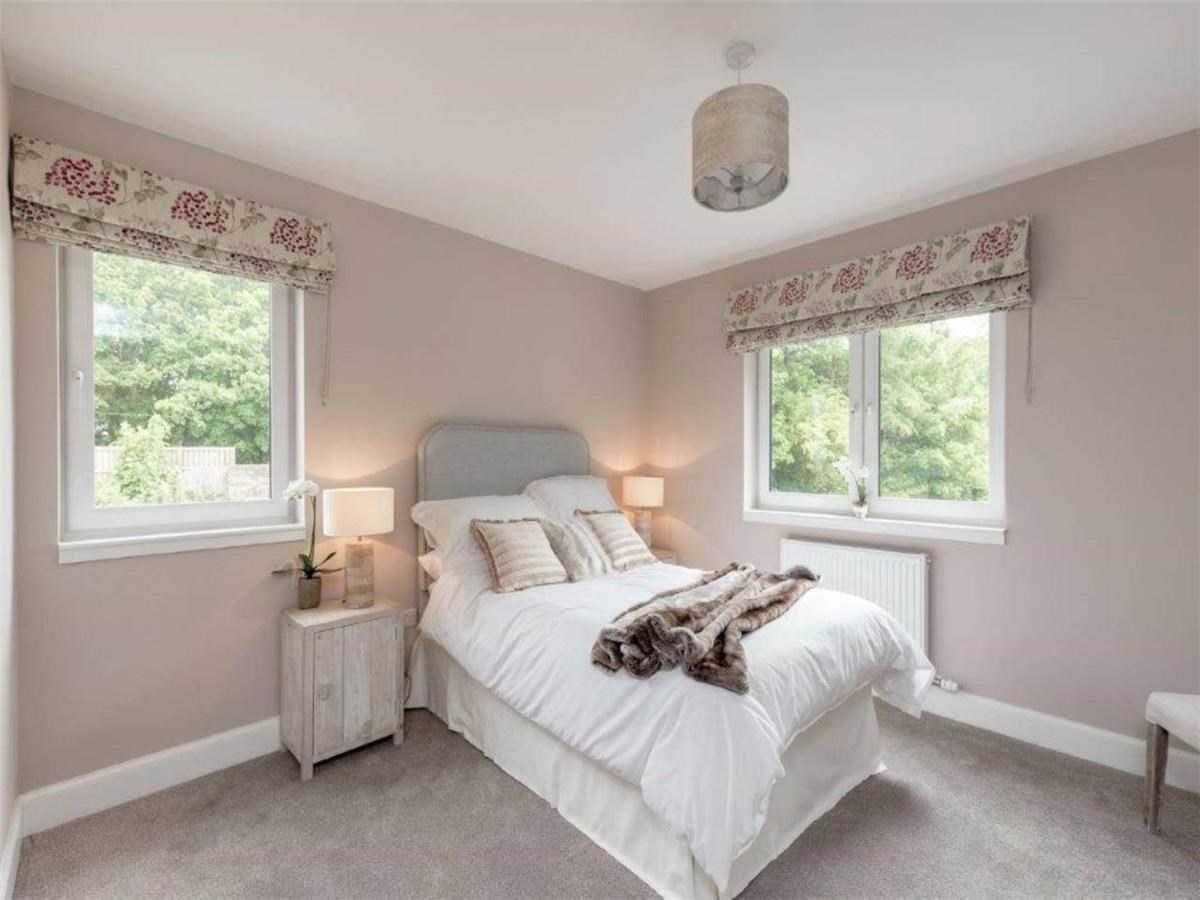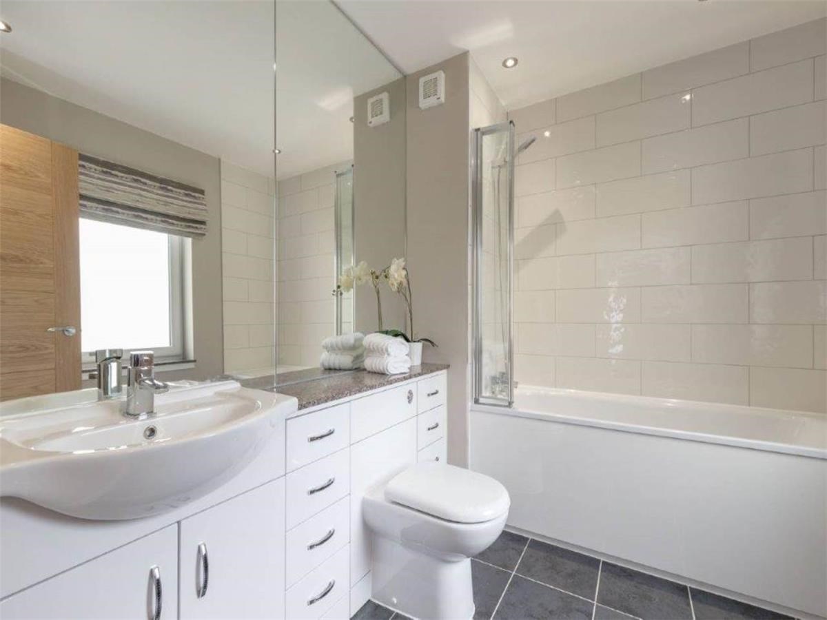 First Floor - The main bedroom suite leading to a dressing room with twin wardrobes and onto the en-suite shower room. French doors lead to a south facing balcony. A spacious bedroom two with fitted wardrobe and family bathroom.