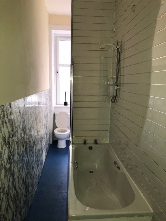 Ritehome are pleased to offer this first floor 1 bedroom flat close to the heart of Renfrew Town Centre. There is a good sized carpeted lounge with kitchen area off. The kitchen vinyl flooring and beech units and is supplied with a cooker, washing machine and fridge. The double bedroom has a bay window facing onto Paisley Road the front and has a built in wardrobe. The bathroom has a 3 piece suite with over bath electric shower. The property has electric heating and double glazing. EPC rating: E. Letting Agent Registration Number: LARN1807014.