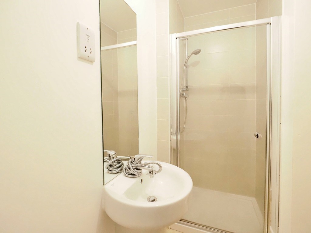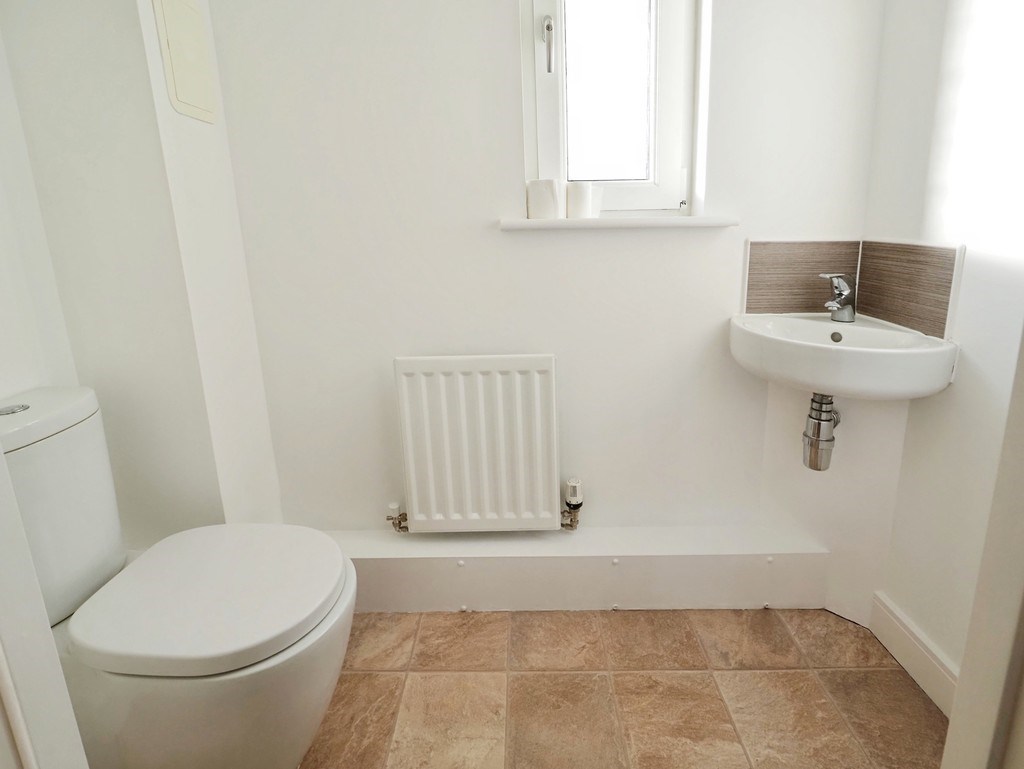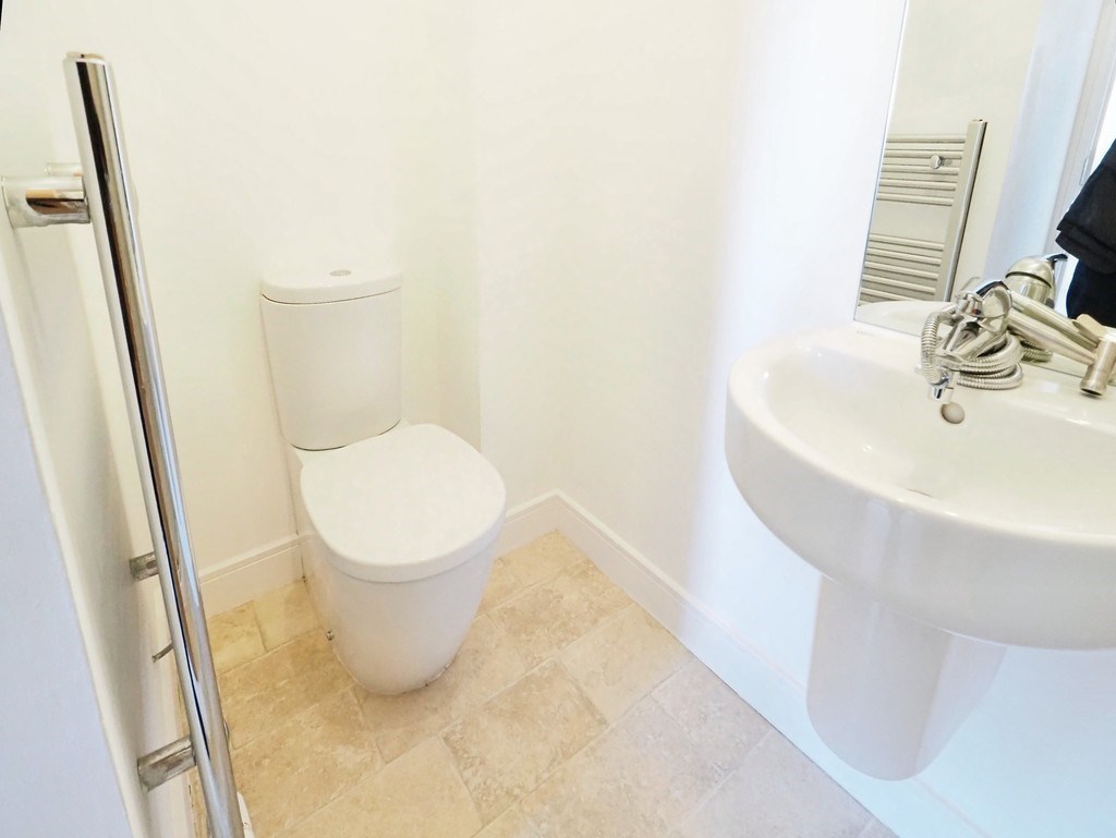 Accommodation comprises three bedrooms: a master bedroom boasting an en-suite shower room and built-in wardrobes for ample storage, a double bedroom, and a versatile single bedroom. An additional downstairs W/C adds to the practical living arrangement. The family bathroom is fitted with a heated towel rail and an over-bath shower, providing comfort and convenience.
