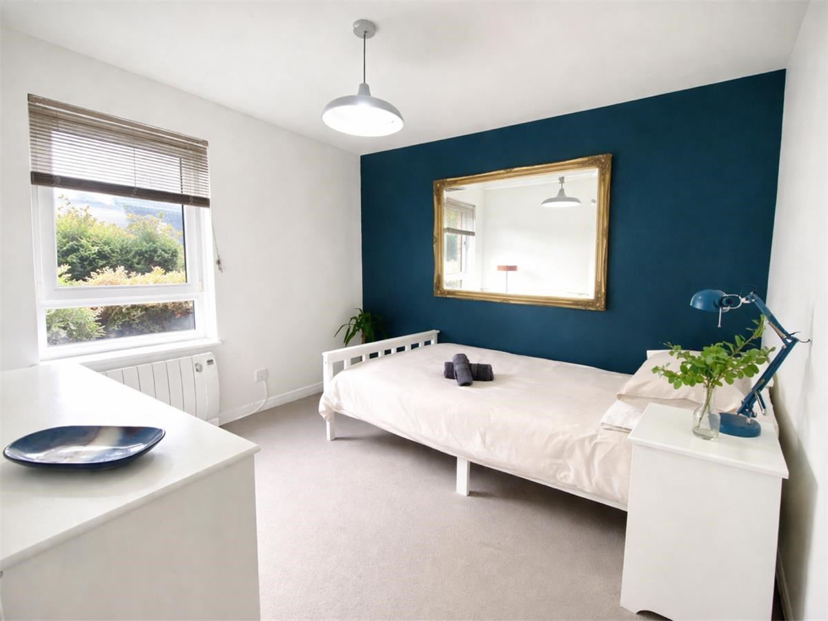The property benefits from double glazing and efficient electric heating throughout. To the rear of the property is a communal garden with established shrubs.