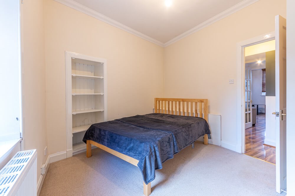 ~Double bedroom with carpeted flooring and built in storage and freshly painted décor