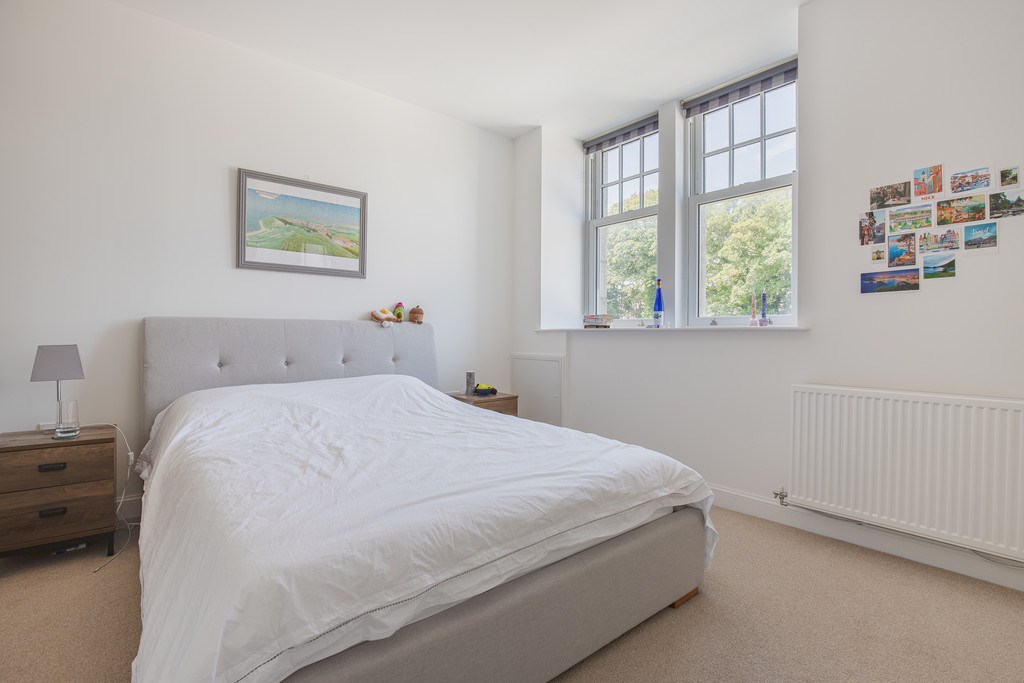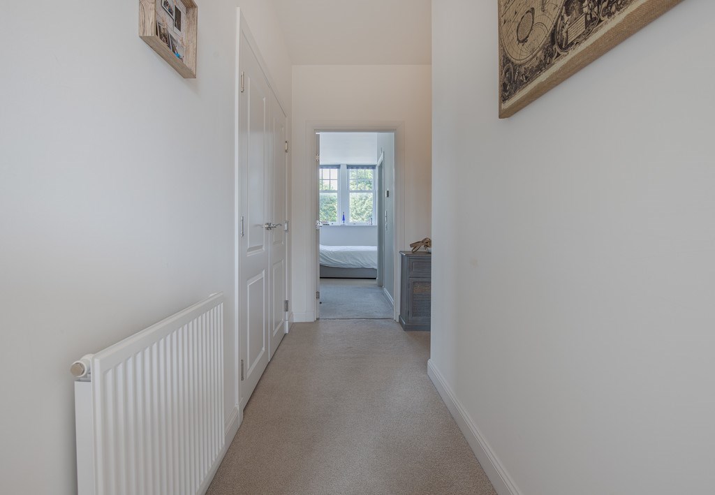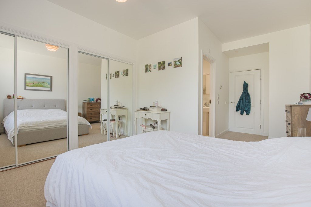 A bank of mirrored fitted wardrobes provides excellent storage while reflecting light to enhance the sense of space. The room also features an en-suite, adding convenience and privacy.