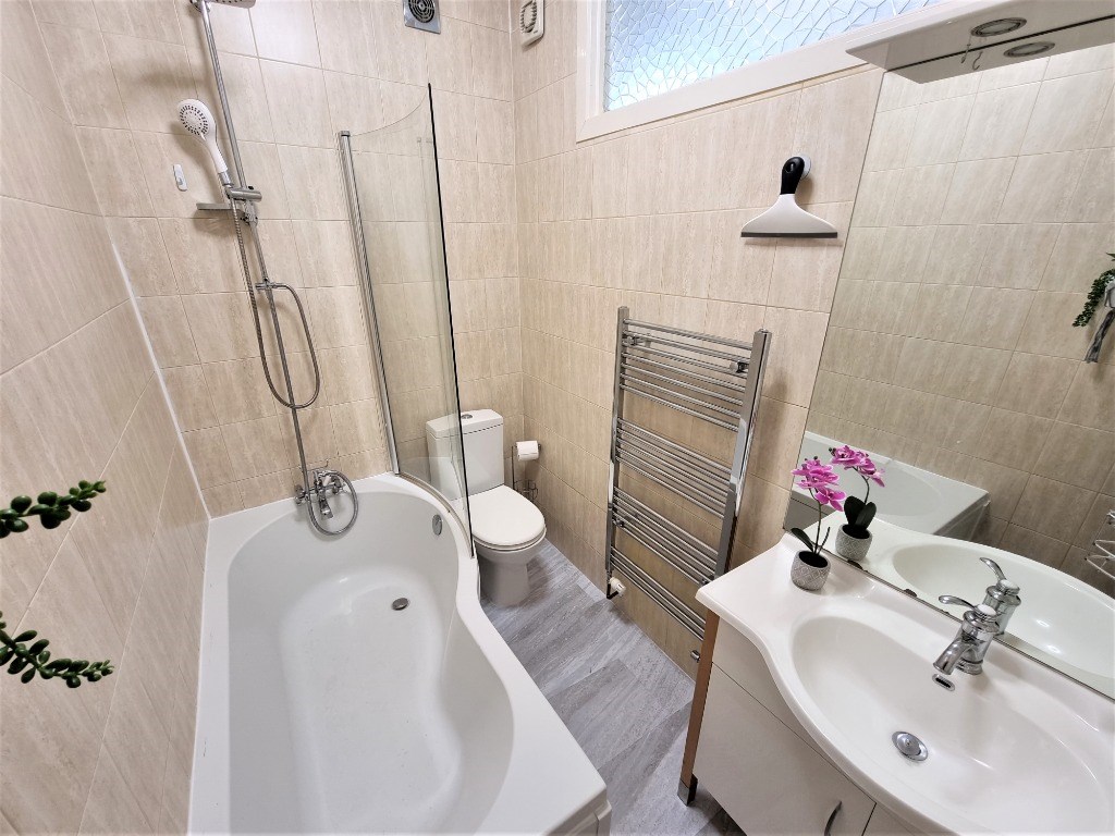 Spacious Kitchen diner with integrated Dishwasher: Light and airy Living room with wall mounted TV: Double bedroom with storage: Bathroom with shower over bath: Hall with large walk in cupboard.