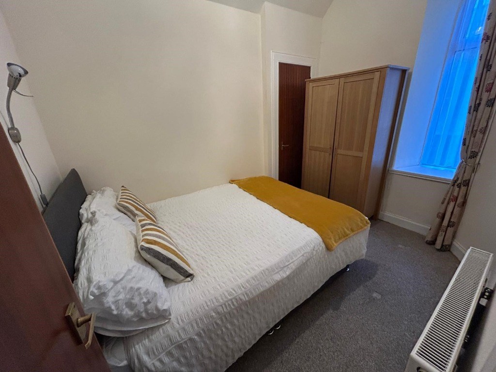 Situated on the ground floor, the lounge is bright and spacious with two sofas, traditional features and space for dining. The kitchen has wood effect cabinet units and wood paneled flooring, equipped with electric oven & hob, fridge and washing machine. The property has one double bedroom with a freestanding wardrobe for storage. The bathroom is neutrally decorated with a white three-piece suite and shower over the bath. GCH & DG throughout. Viewing is recommended. EPC rating: D. Landlord Registration Number: 77237/100/31530 .
