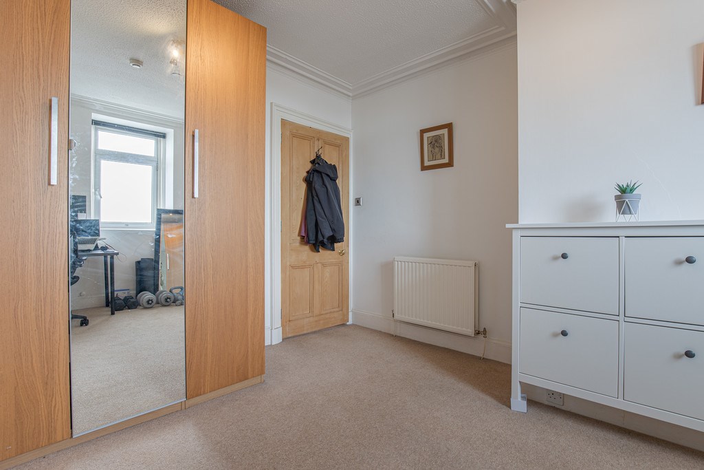 LIVING ROOM Large windows flood the living space with natural light, enhanced by sleek white frames that add a clean, modern touch. The generous proportions of the room allow ample space for additional furnishings, while views overlook the vibrant streets of one of Aberdeen's most sought-after areas.