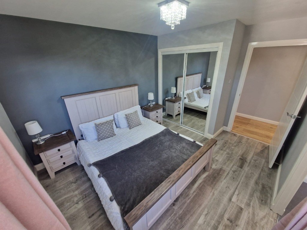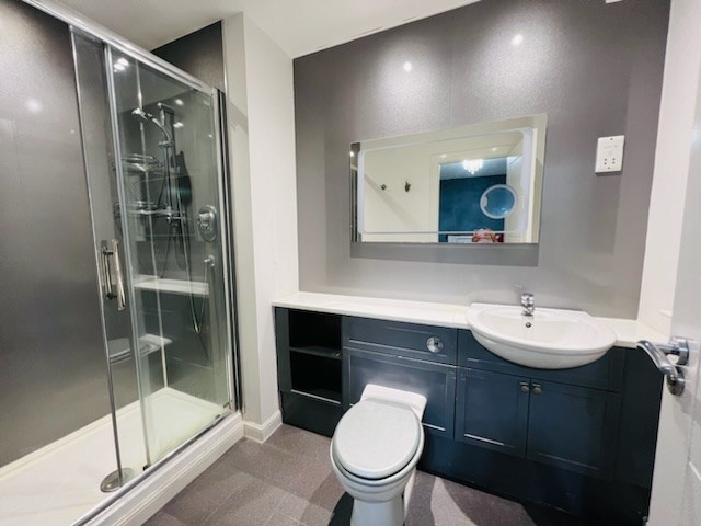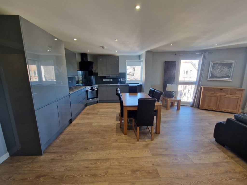 Beautifully furnished to an exceptional standard throughout, the apartment features two generously-sized bedrooms and two sleek bathrooms, including a private en-suite off the master bedroom. The large, open-plan kitchen and lounge area is bright and airy, ideal for both relaxing and entertaining. The kitchen is fully kitted out with all the usual high-end appliances, including a dishwasher, fridge/freezer, washing machine, microwave, oven, and electric hob.