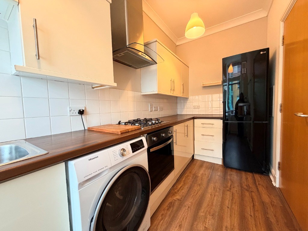 The property has been freshly painted throughout and offers well-proportioned accommodation, comprising; welcoming hallway, bright bay-windowed lounge with laminate flooring, modern galley kitchen off the lounge, spacious double bedroom with storage, and a stylish shower room.
