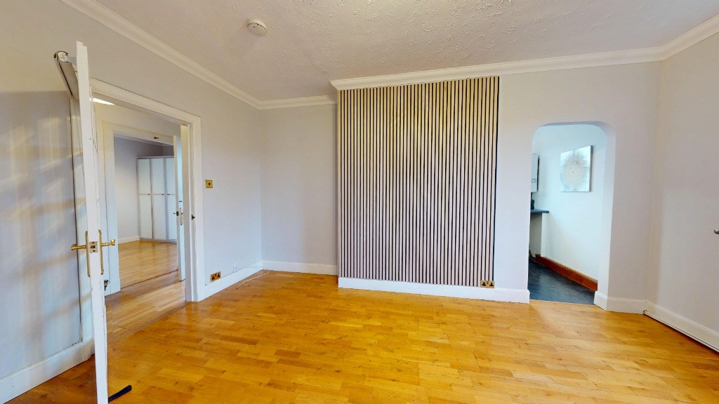 This 1-bedroom flat in Aberdeen offers a well-designed living space of 527 sq. ft. The property boasts a spacious primary bedroom of 183 sq. ft., complemented by a bathroom. The interior is characterized by bright, neutral walls and warm wooden floors throughout, creating a cohesive and inviting atmosphere.