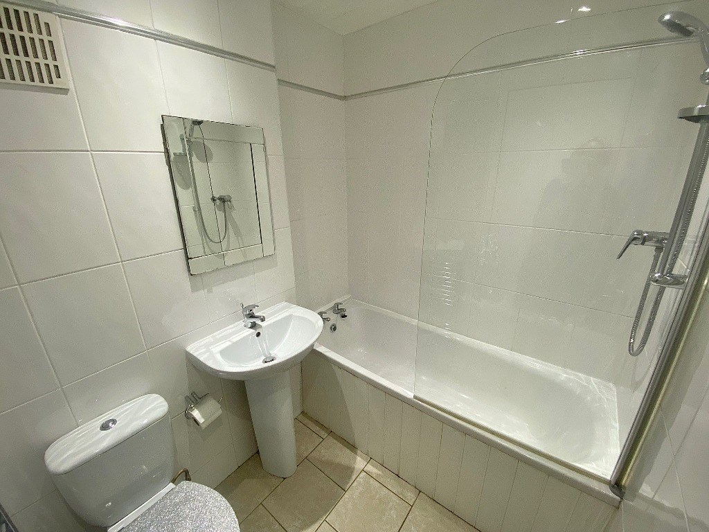 A secure door entry system leads to the well maintained common staircase. Upon entering the accommodation, you are greeted by a welcoming hallway decorated in bright neural tones and a large walk-in cupboard providing ample storage. The spacious lounge, which perfectly balances the traditional high ceiling & ceiling rose with contemporary decor, is flooded with natural light from the front aspect bay window. The modern kitchen features a range of base and wall mounted units, contrasting work surfaces, integrated oven & hob and space for a range of freestanding appliances. The kitchen also houses the gas combi-boiler. The double bedroom features bright modern décor, ceiling light, built-in cupboard and a rear aspct window affording the maximum of natural light. The property is completed by a modern family bathroom featuring a three piece suite comprising a W.C, wash hand basin and bath with shower over.