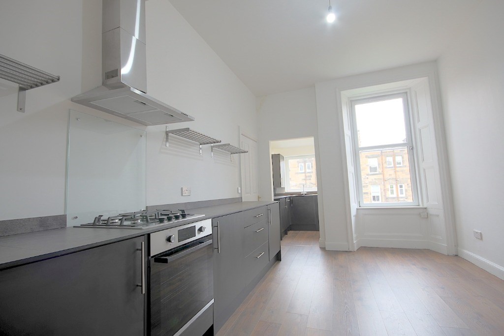 Recently refurbished throughout to a very high standard, this open, light-filled 2/3-bedroom flat comprises a spacious entrance hallway, a lovely open-plan kitchen/diner/living room with a separate scullery to the rear, 2 double bedrooms, additional living room to the front with a view of the Pentland hills, and a well-appointed bathroom. The property further benefits from a study/box room, shared garden, gas central heating throughout, double glazed windows and great storage. Further selling point, exclusive access to a storage area in the bottom floor under the stair, big enough to store lots of boxes, a couple of bikes and a buggy.