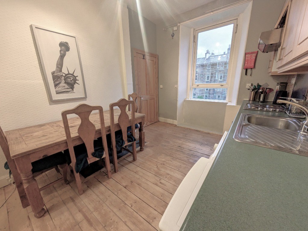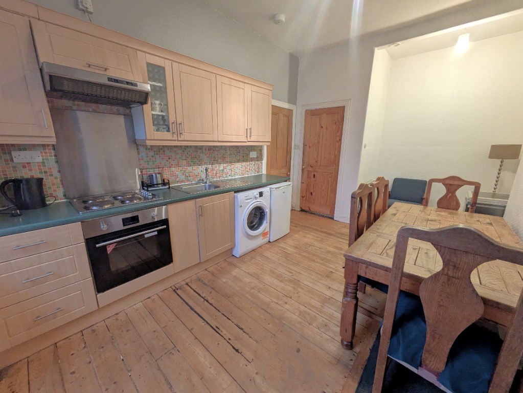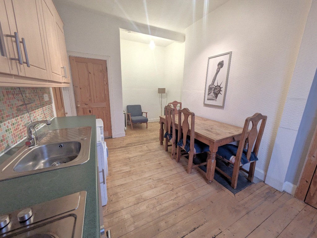Well presented, one-bedroom flat, situated on the first floor of a traditional tenement in popular Shandon. This bright and airy accommodation is enhanced by tasteful decor and benefits from access to a shared rear garden, and permit on-street parking. Presented to the market fully furnished, the accommodation is comprised of: A large entrance hall with storage, a generous living room with southwest-facing bay window. Accessed via the living room is a useful box room. There is a large kitchen/diner, well-appointed with contemporary cabinetry and appliances, in addition to a useful pantry cupboard. A large double bedroom also faces the front of the property. A partially tiled family bathroom with shower completes the accommodation. Further benefits include comprehensive double glazing and gas central heating throughout.
