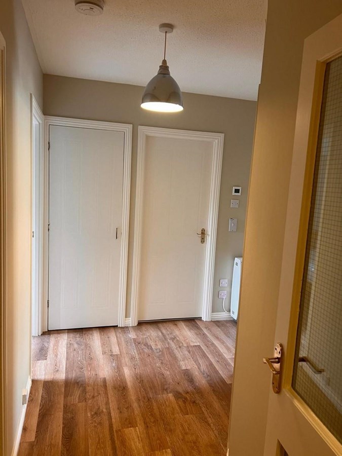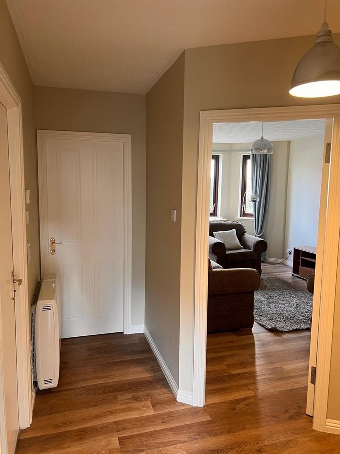 The property comprises a small entrance hallway leading through to the main hallway, off which all the rooms are accessed. There are two similar sized double bedrooms both of which have large walk-in wardrobes. There is a modern bathroom with basin, WC, bath with overhead shower and underfloor heating. The kitchen has been recently renovated and is equipped with a family size fridge freezer, microwave, washing machine, electric cooker and hob. The sitting room is bright with a large bay window. The flat also benefits from a private resident’s parking space in the communal area to the rear.