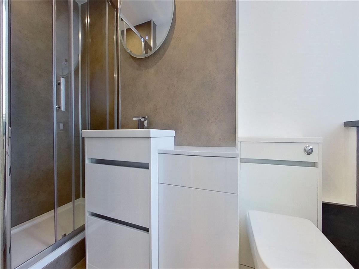 Internal accommodation comprises of a welcoming entrance which leads directly into the open plan kitchen and lounge. The stylish kitchen is well equipped with fully integrated appliances, a range of white gloss base and wall mounted units and finished with a tiled backsplash. The lounge is neutrally decorated with large windows making this a bright but cosy space. The generously sized double bedroom is accessed via the lounge through an opaque sliding door. Furthermore the bedroom benefits from a floor-to-ceiling mirrored wardrobe and en suite principal shower room.