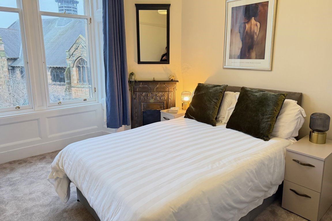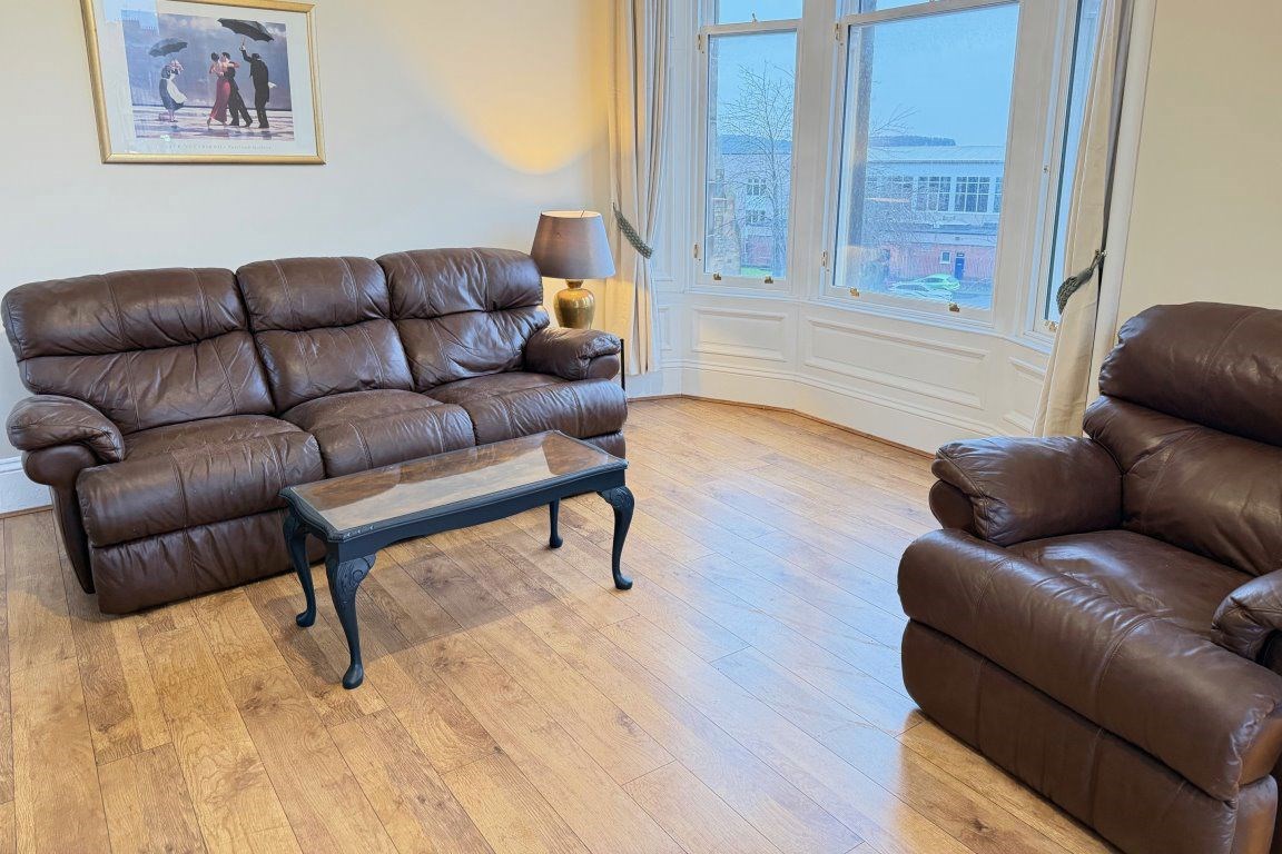 A unique and spacious one bedroom 2nd floor tenement flat with shared roof terrace looking out over Shawlands.