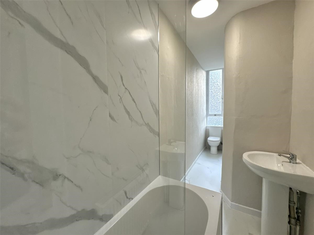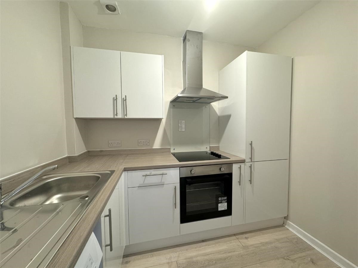 The property is in move-in ready condition and has been professionally cleaned throughout. Internally, the flat comprises a welcoming entrance hallway, a bright and spacious lounge featuring an attractive bay window, and a modern fitted kitchen equipped with an electric hob, oven, washing machine and integrated fridge freezer. The generous double bedroom is positioned to the rear of the property, offering a quiet outlook and ample space for freestanding furniture. The accommodation is completed by a stylish three-piece bathroom with an overhead shower.