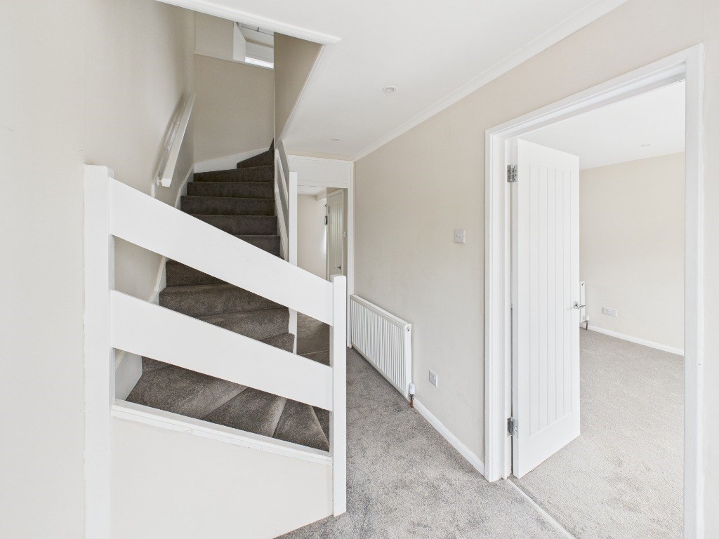 The lower floor of this recently renovated property comprises of a large living space, modern fitted kitchen-diner with dishwasher, a spacious shower room and ample storage cupboards. Upstairs are 3 good sized double bedrooms with built in wardrobes and a family bathroom with shower over bath and additional airing cupboard. The property also benefits from a garage and rear garden space, ideal for families. Externally, the property enjoys established front and rear gardens and off-street parking.