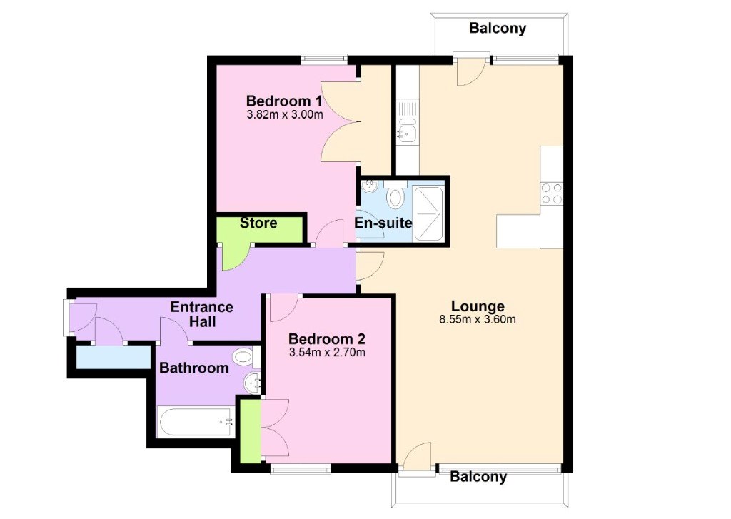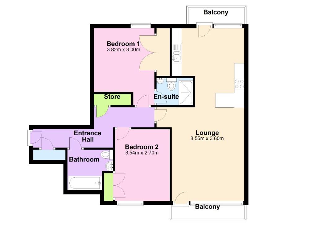 Forming part of the popular Slateford Village, this spacious and well laid out first floor apartment offers and modern, open plan living environment. Presented to the market unfurnished, the accommodation is comprised of: A reception hall with storage cupboards, a living room with dining area and French doors to two balconies, a fitted kitchen with appliances, a master bedroom with fitted wardrobes and en-suite shower-room, a further double bedroom with fitted wardrobes and finally a family bathroom with shower. Further benefits include: Lift access, secure entry phone, double glazing, gas central heating, residents parking and shared gardens.