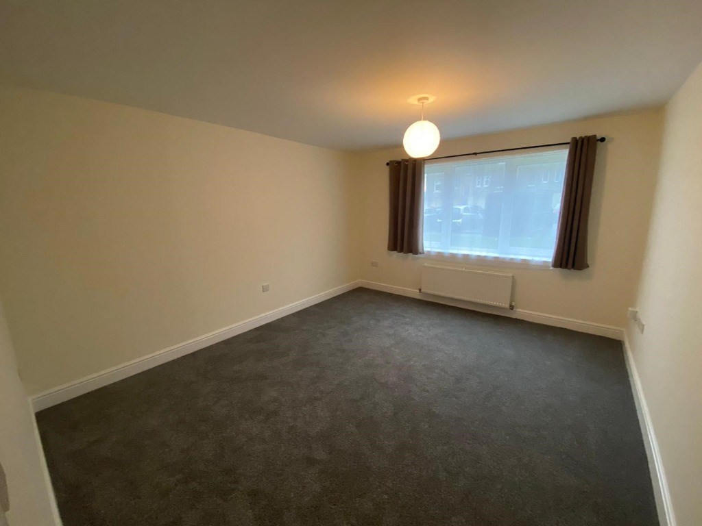 The unfurnished accommodation comprises: welcoming entrance hallway with storage, a generous lounge with ample space for dining, a modern fitted kitchen, two double bedrooms (master with built-in wardrobes), and a family bathroom with shower over bath.