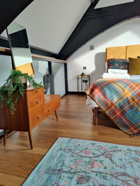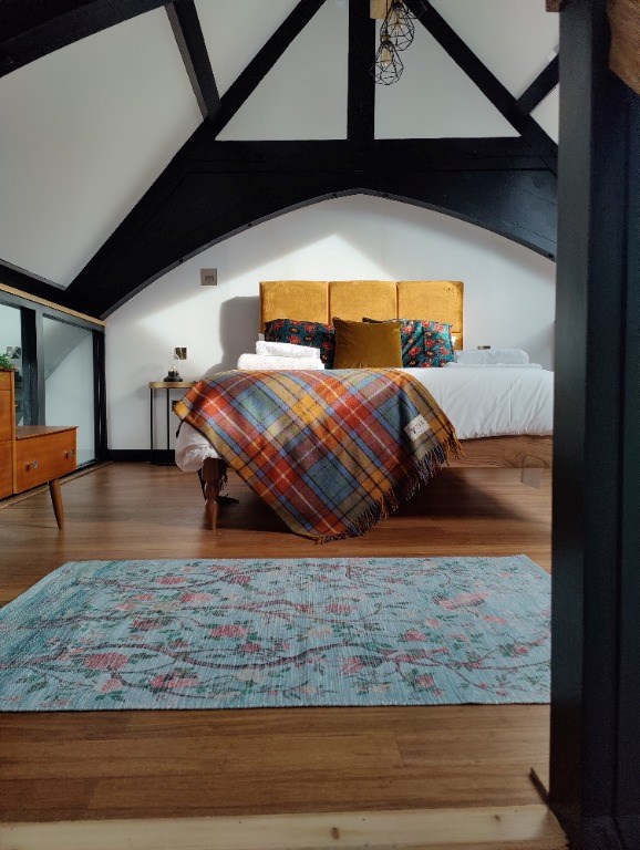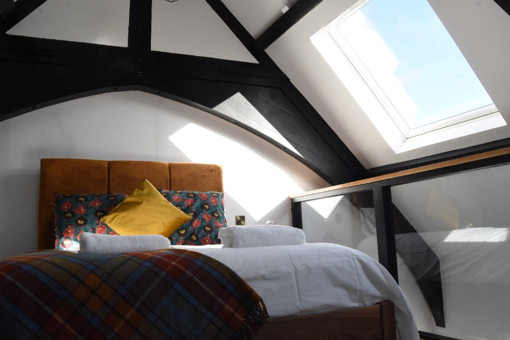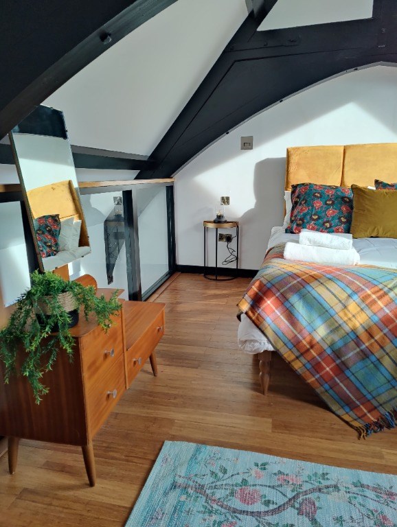 Spread across three floors, this apartment is designed to provide comfort, luxury, and inspiration to artists and creatives seeking a unique living space in Edinburgh. The highlight of the apartment is the truly unique and stunning bedroom built on a platform just below the grand oak beam hall roof.