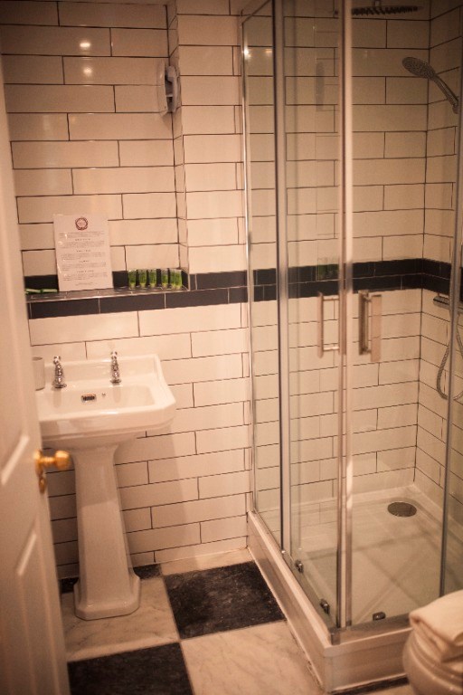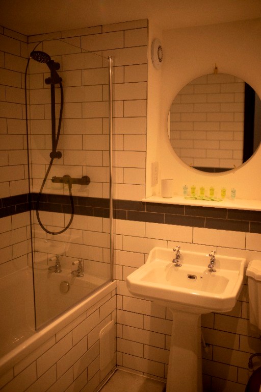 On the ground floor, you will find a full bathroom with stunning Victorian tiles. The bathroom is well-equipped with all the necessary fixtures and fittings for your comfort.