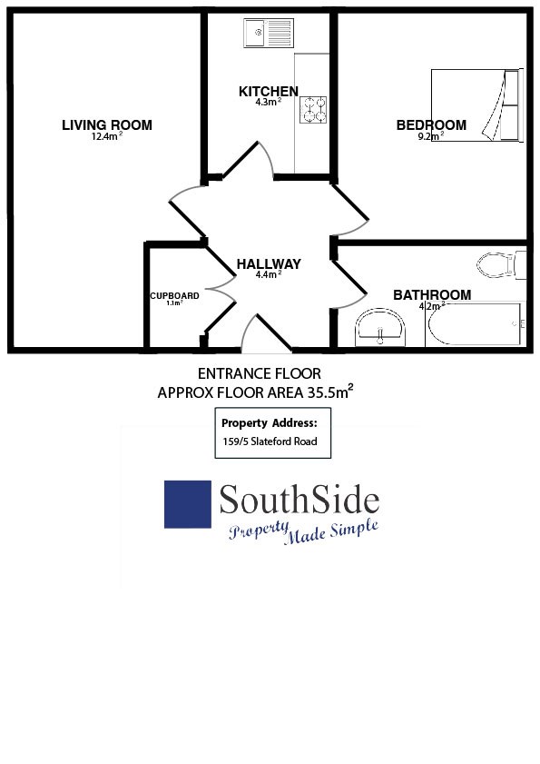 Bright and desirable, 1-bedroom flat located on Slateford Road, to the West of the City. Located just a ten-minute walk from Fountainpark leisure centre that includes mini golf and Cineworld, there are several local shops, parks and restaurants nearby. The Meggetland Sports Complex is just a fifteen-minute walk, and the O2 Academy, a 24-hour supermarket and George Watson’s College are all within easy reach. Slateford and Haymarket Rail Stations are close by, as well as excellent bus services available linking the property to the rest of the City, making the property suitable for professionals or students. The city bypass is also easily accessible.