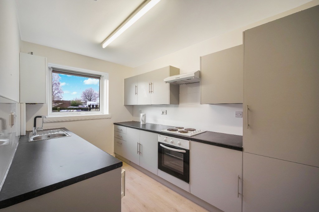 This spacious ground floor apartment comprises; entrance hallway, large bright lounge overlooking green space, two double bedrooms, a modern kitchen with cooker and hob, and under counter fridge and modern bathroom with electric shower over both.
