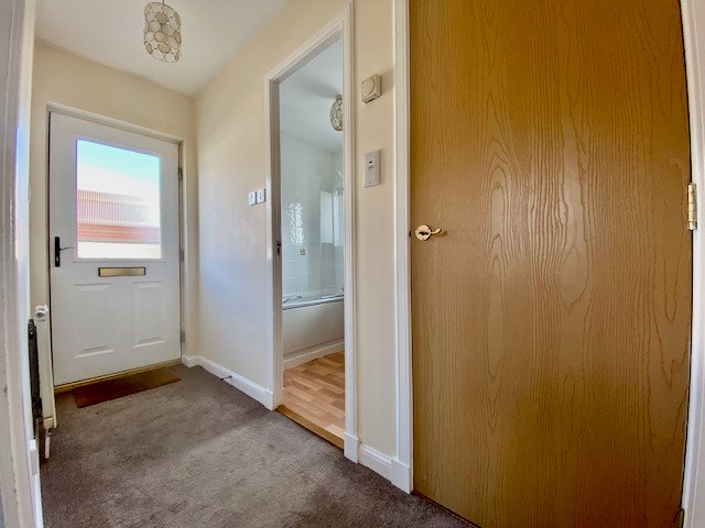 The entrance hall leads to all rooms including one good sized double bedroom with full length and height built in wardrobes, hall closet housing gas central heating boiler, bathroom with WC and shower over bath, large lounge comprising of three areas: dining table with dining chairs, fully fitted modern kitchen area and relaxed seating area with comfy sofa.