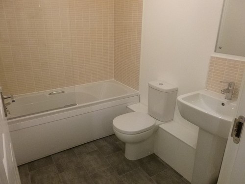 *** AVAILABLE August** WOULD SUIT A COUPLE This ground floor property has a spacious entry hall with large storage cupboard and leads to the fully fitted kitchen on the right which includes a slimline dishwasher, washer/dryer, electric oven and gas hob, fridge freezer and extractor hood. The next room is a good sized lounge with feature window. Across the hall are two bedrooms one of which has its own ensuite shower room with basin and WC and large double cubicle, the other bedroom has a walk in wardrobe. A large bathroom with white suite, partial tiling, and shower over the bath completes the package. The common areas will be factored and there is a bin store outside along with lots of parking space for residents. The flat further benefits from an upgrade package which includes a stainless steel splashback, light fittings, and blinds in the bedrooms/mirrors in both bathrooms. THE PROPERTY IS UNFURNISHED & FRESHLY PAINTED