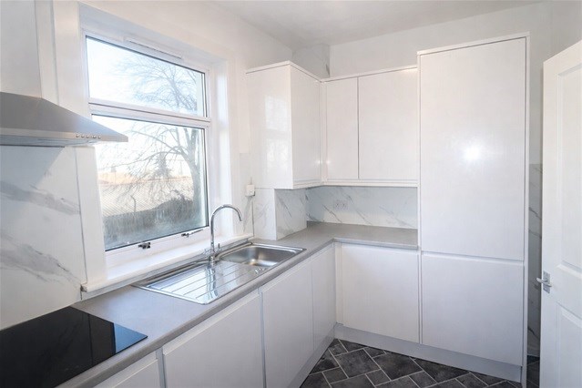 Newly fitted kitchen complete with appliances - fresh and ready for everyday use.