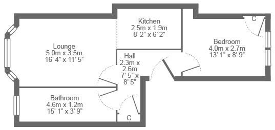 Upon entering the property, you are welcomed into the entrance hallway which provides access to all rooms. The accommodation comprises open plan, bright lounge which has ample living space and benefits from feature bay windows and a fireplace. The lounge leads onto the kitchen which boasts a range of floor and wall mounted fitted units and a selection of appliances including a fridge/freezer, gas hob, oven and washing machine. The modern, partly tiled bathroom has a three piece suite consisting of a sink, toilet and bath with electric shower overhead. The double bedroom is to the rear of the property.