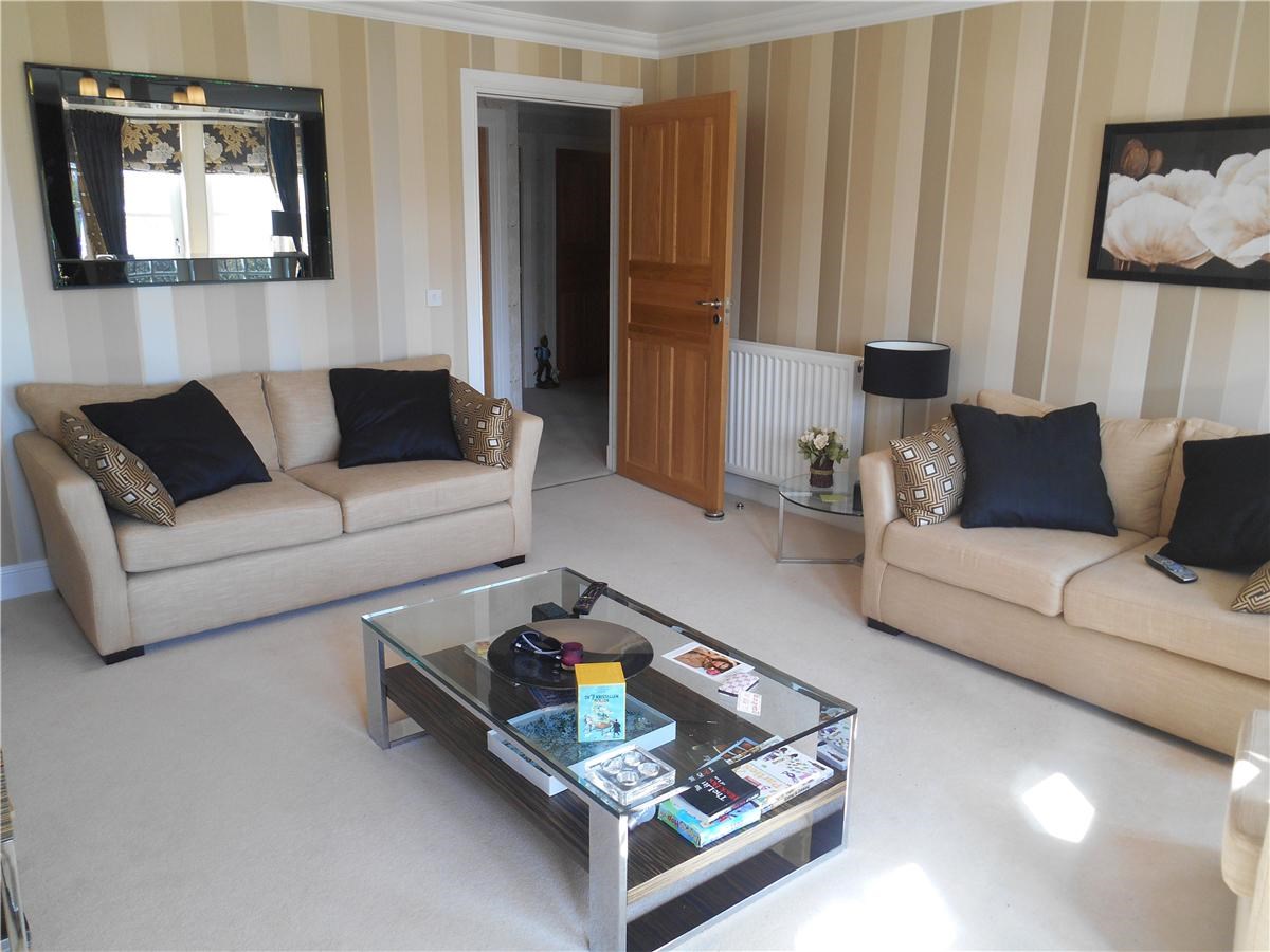 Spacious lounge with large windows which flood the room with light